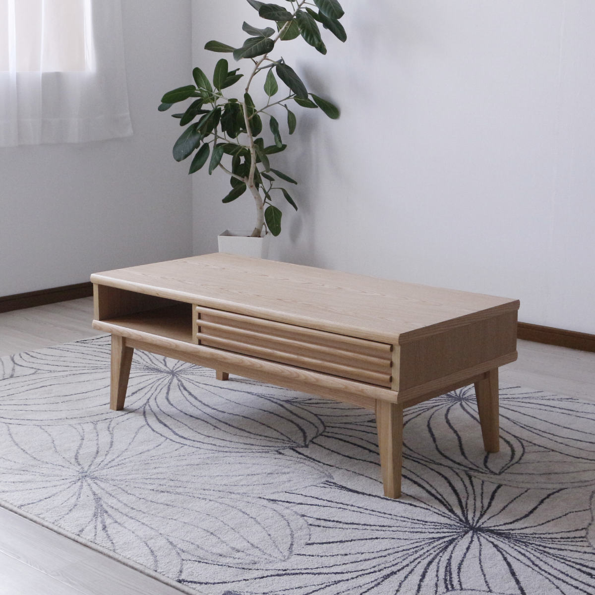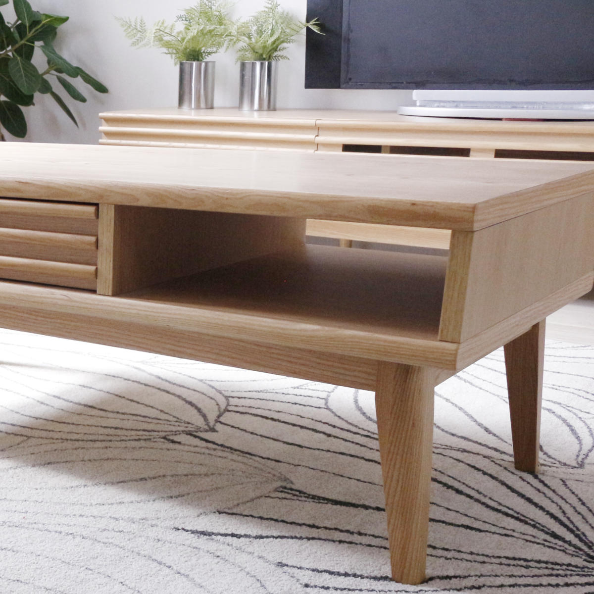 リビングテーブル 高さ38cm 天板長方形 引出し付 センターテーブル ( テーブル 机 リビング ローテーブル 木製 天然木 収納 引き出し 長方形 棚付き 完成品 コーヒーテーブル おしゃれ 木製テーブル ) 【ナチュラル】