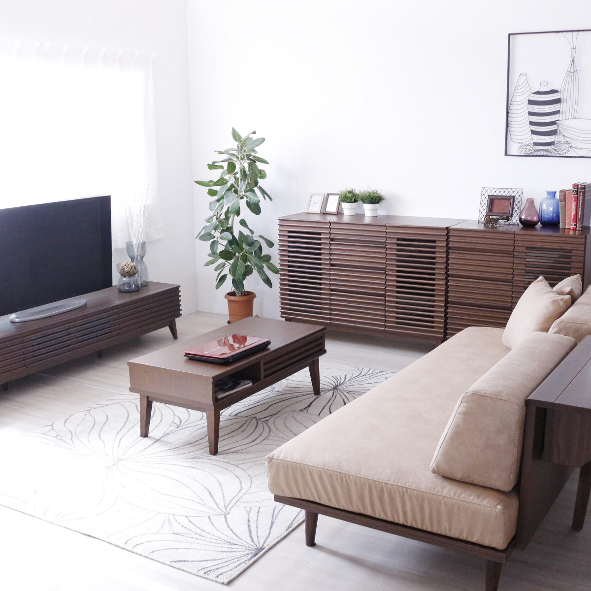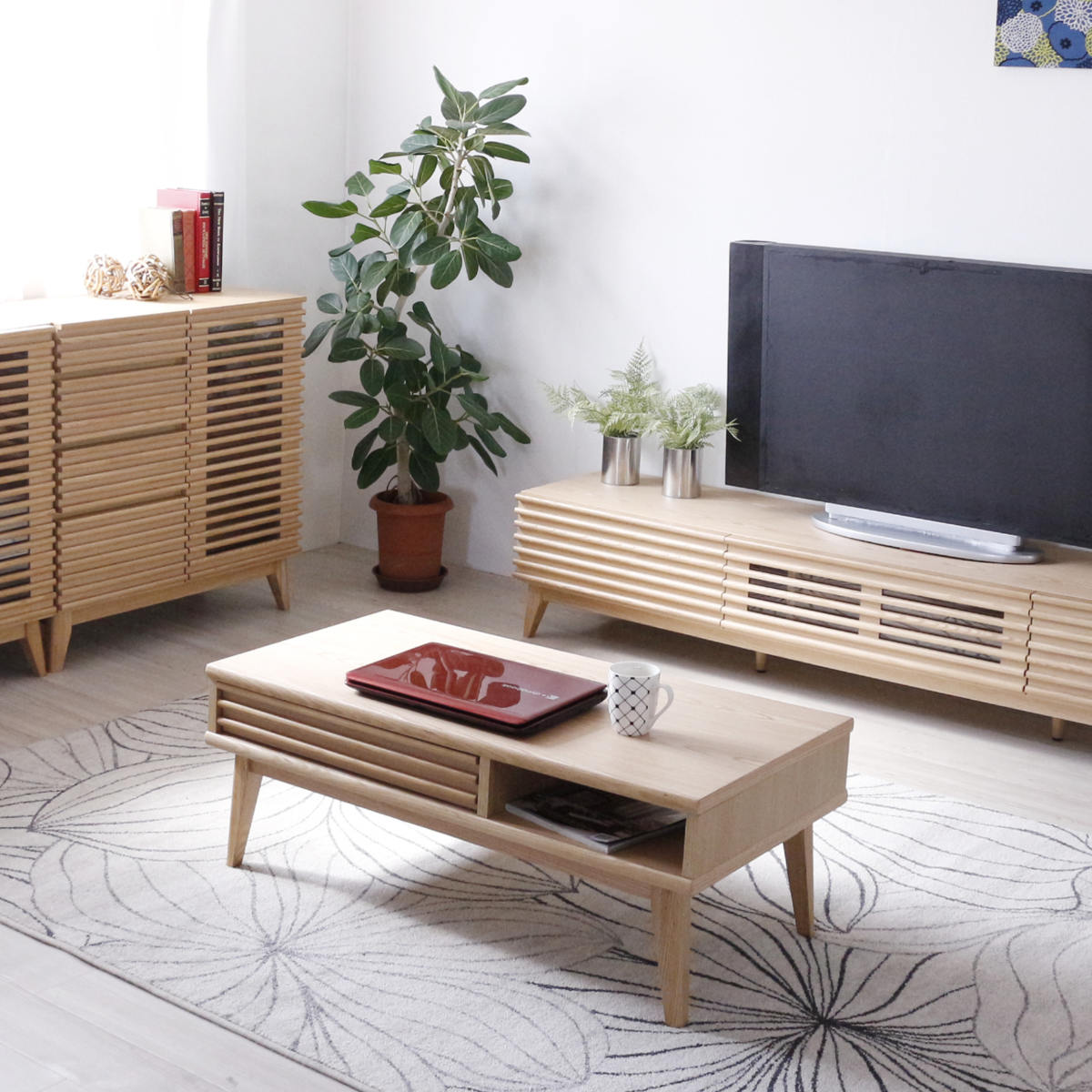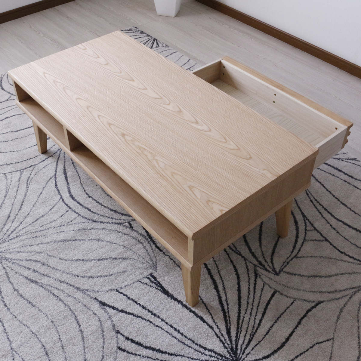 ノートパソコンを置くのに便利なオープンスペースです。リモコンなどのよく使うものを入れて置く場所としてもぴったりです。
