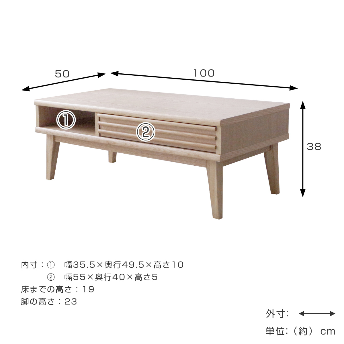 | サイズ | 約 幅100×奥行50×高さ38(cm) |