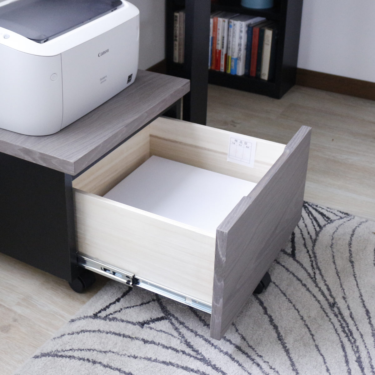 A4サイズの用紙が収納できる引き出しが付いています。プリンター用紙やインクのストックなどを収納できて便利です。