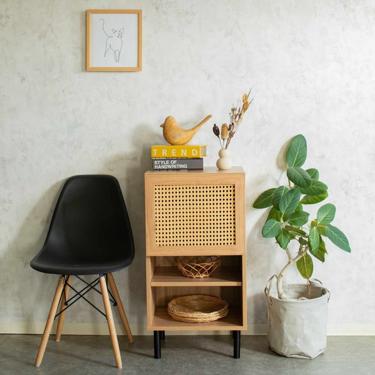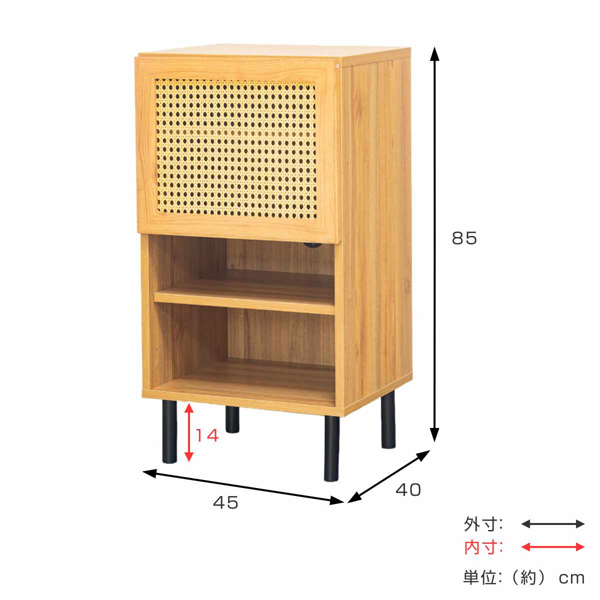 お部屋をかわいく演出するラタン調キャビネット 幅45cm