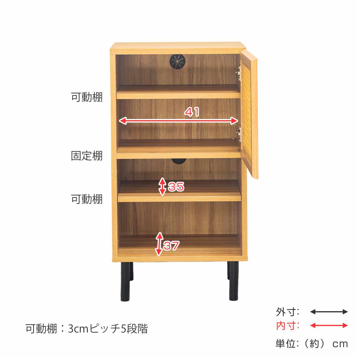 キャビネット 幅45cm ラタン調 マルシェシリーズ ( 棚 ラック 扉 リビング収納 可動棚 飾り棚 家具 かごめ編 ナチュラル 配線穴 )