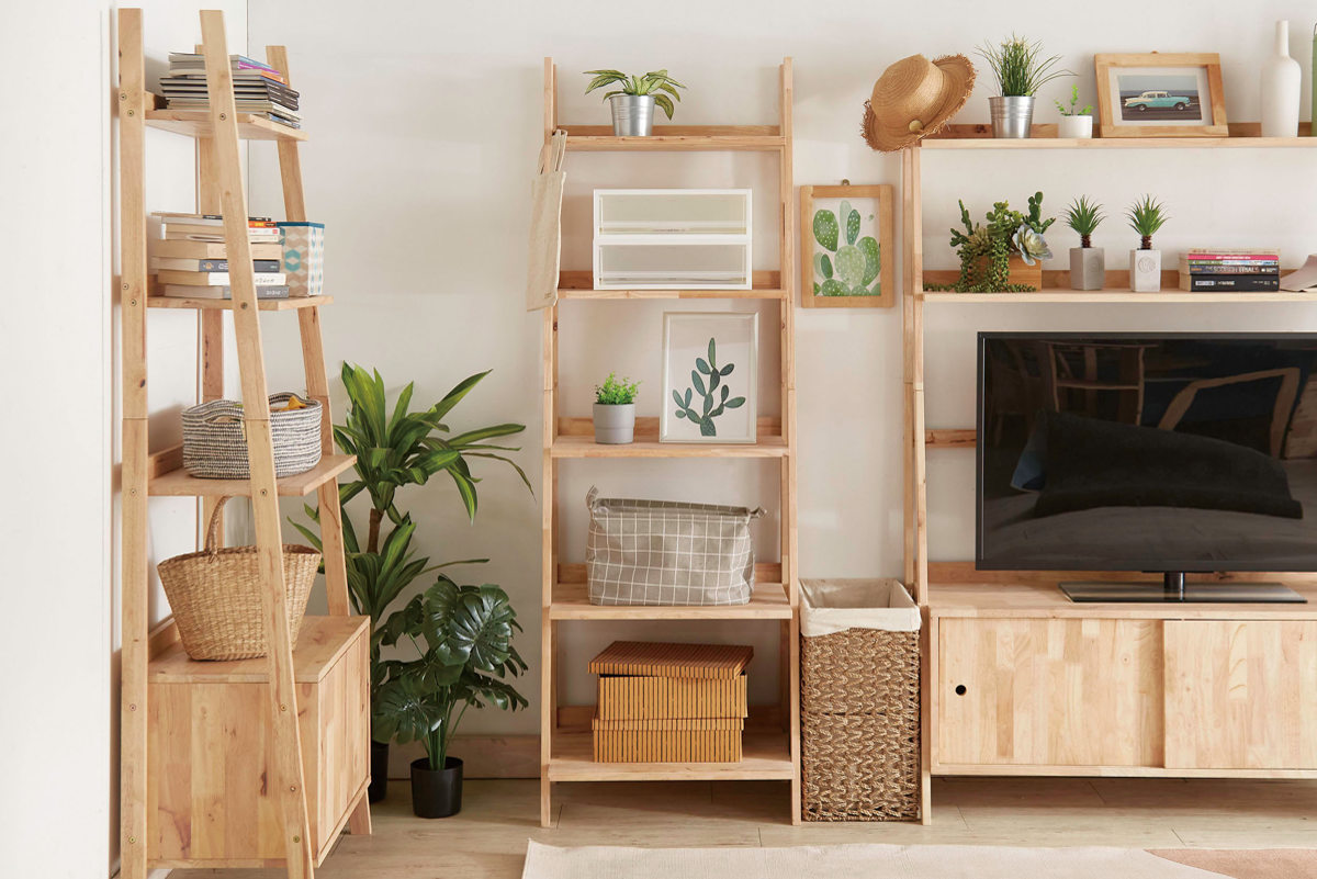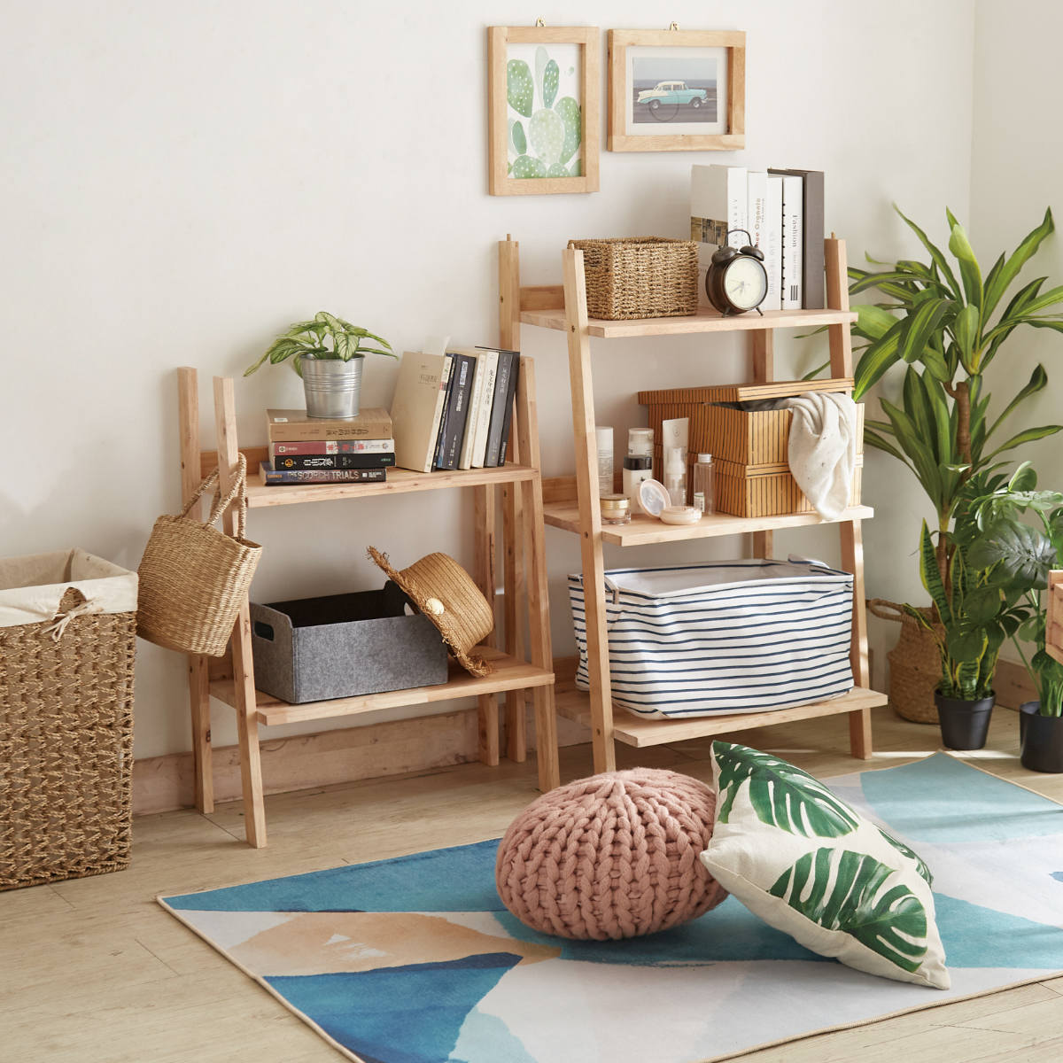 滑らかな手触りで、温もりのある印象の天然木ラバーウッドの無垢材をふんだんに使用したオープンラックです。収納としても、お気に入りを飾るディスプレイラックとしても使い勝手の良いシンプルなデザインです。