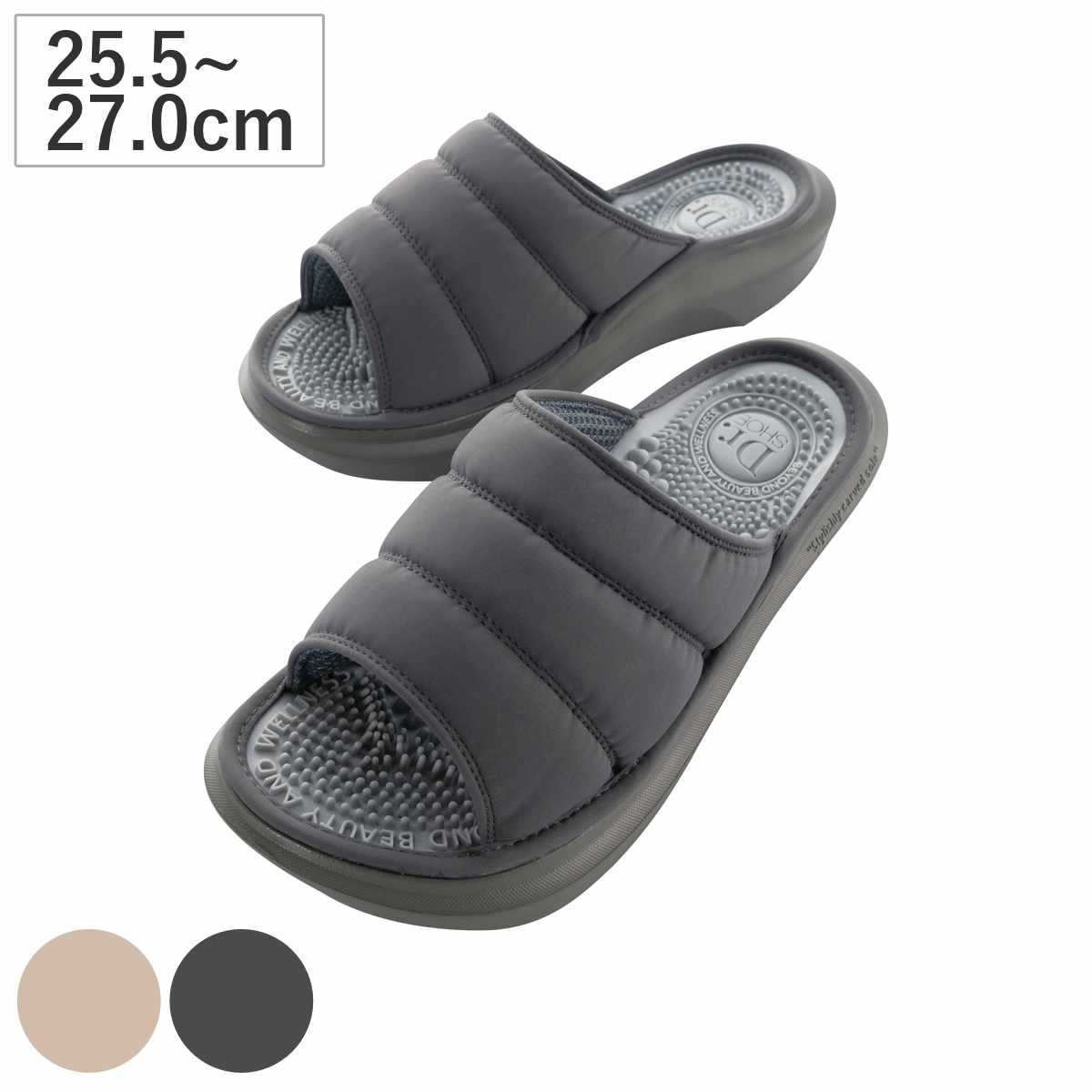 スリッパ Dr.SHOE アクステップ リカバリー・フットウェア S 約21.5~23.0cm ( 健康サンダル 足つぼ 厚底 ルームシューズ 体幹 健康 足裏 EVAソール 疲れにくい 血行を良くする 立体インソール 蒸れにくい メッシュ 室内 ) 【ベージュ】
