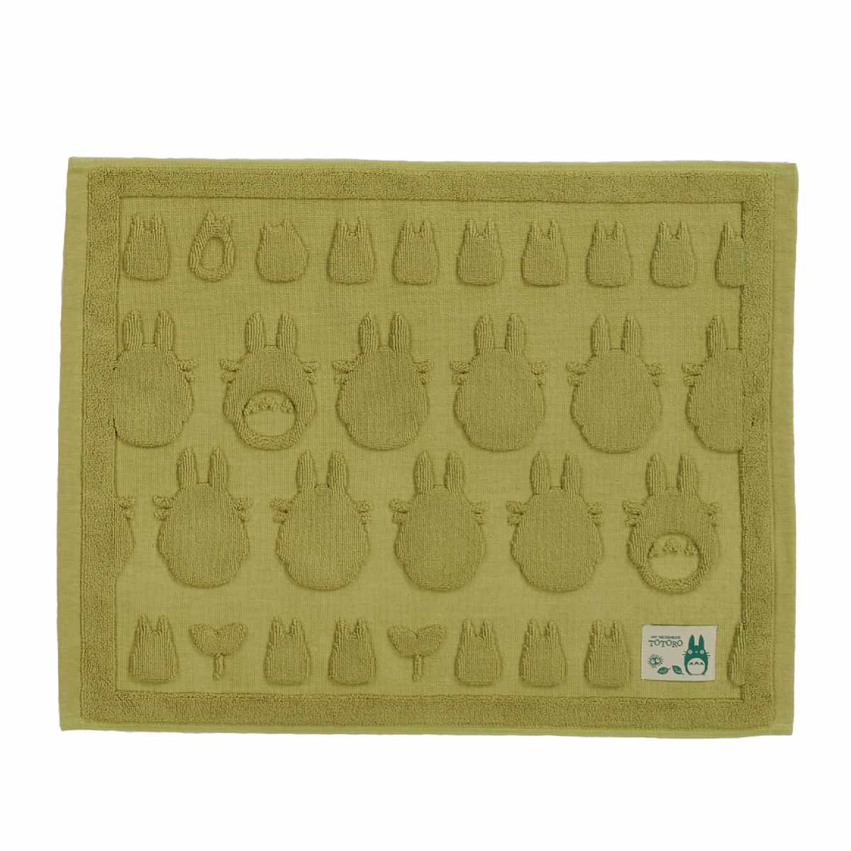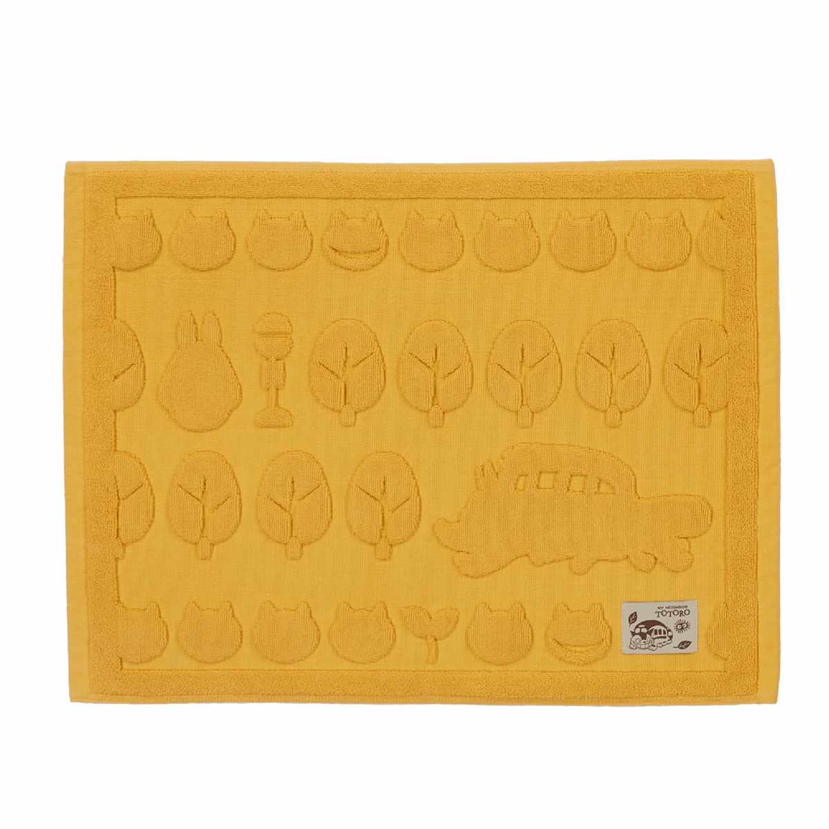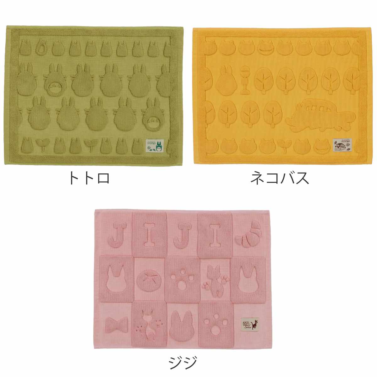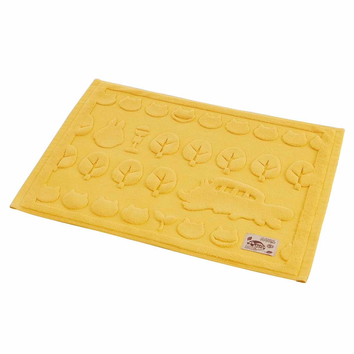 ぷっくり浮き出たトトロ、ネコバス、ジジのシルエットが並ぶデザインのバスマットです。それぞれの物語が思い起こされ、敷くだけで脱衣所が楽しい雰囲気になります。タオル地のバスマットなので、しっかり足元の水分を吸水してくれます。
