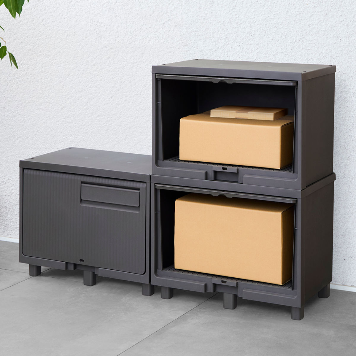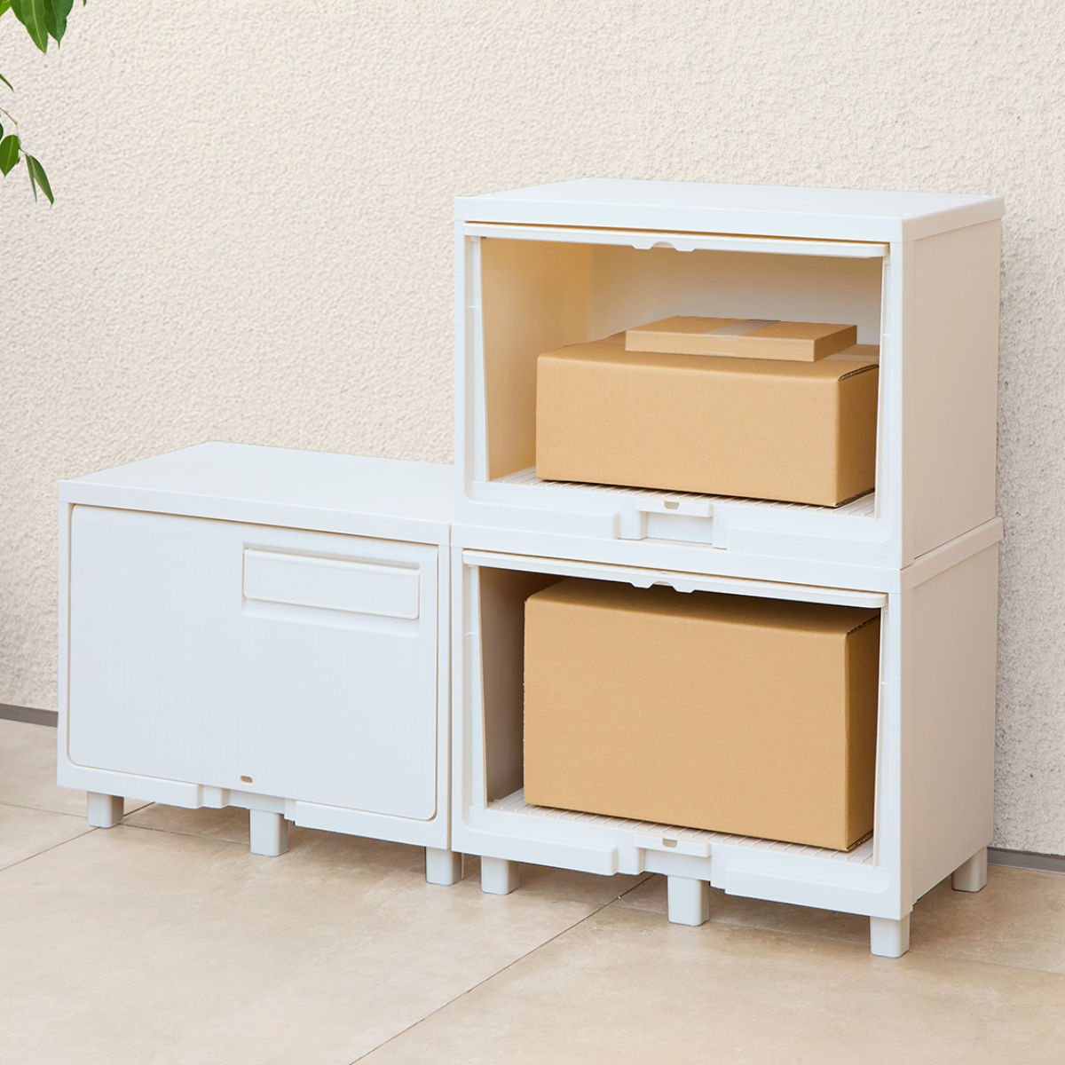 不在時の荷物受け取りに便利な積み重ね式の宅配ボックスです。最大3段まで重ねて収納力をアップでき、家族構成や荷物量に合わせてカスタマイズできます。場所を取らずに複数の荷物を安心して受け取れます。