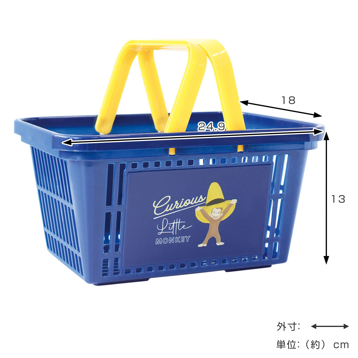 かご バスケット おさるのジョージ キャラバスケット ネイビー 幅24.9×奥行18×高さ13cm ( 収納 収納バスケット プラスチック おもちゃ入れ 子供部屋 カゴ ハンドル付き おもちゃ箱 おもちゃ 子供 片付け 整理整頓 キャラクター )