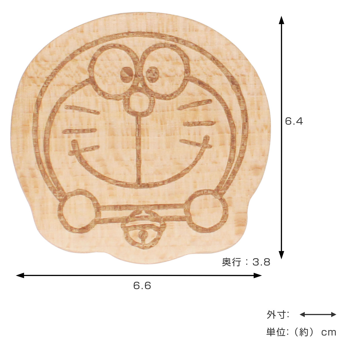 背面の粘着シートで壁に取り付けられるウッドフックです。「ドラえもん」がカバンやストールをキャッチしてかわいく飾れます。