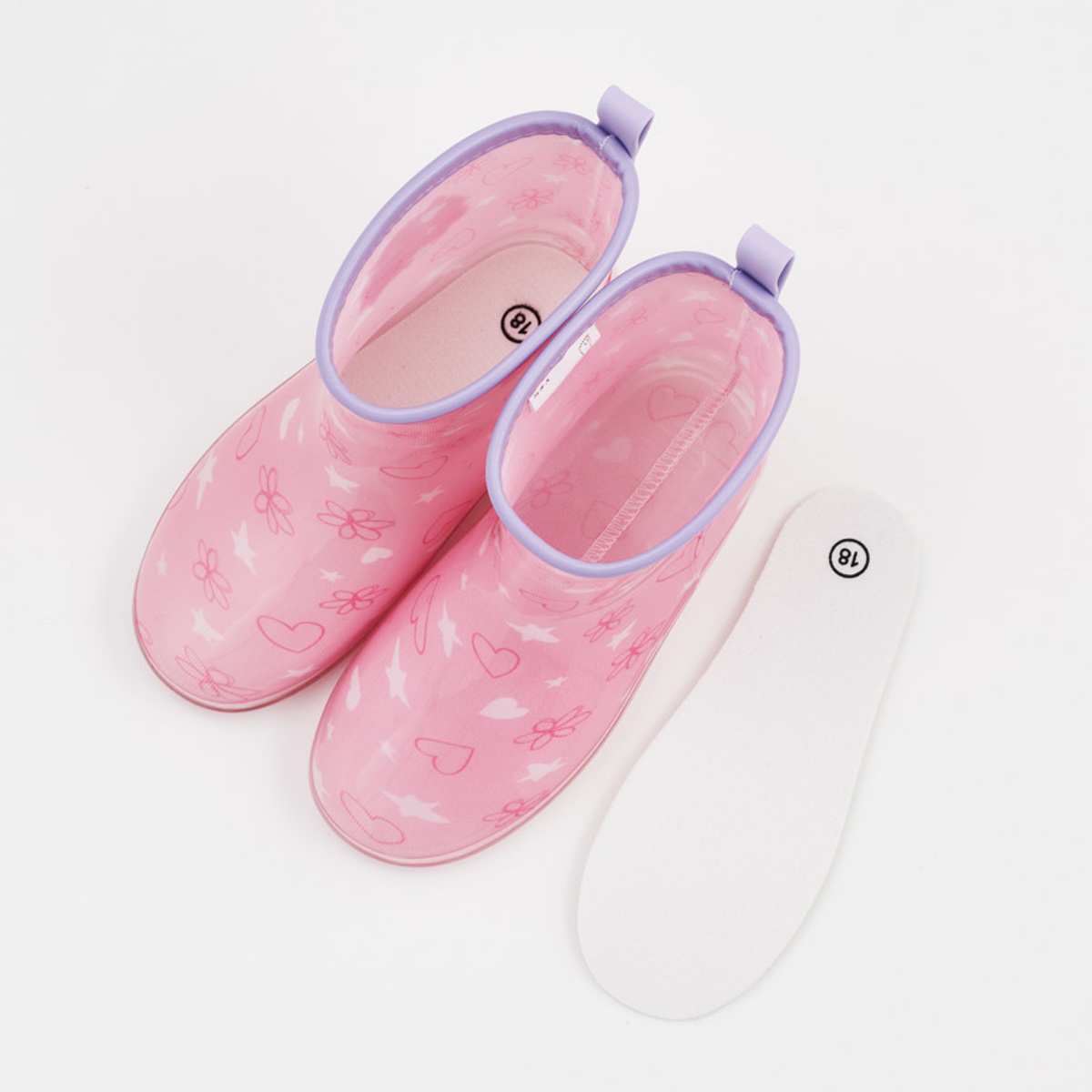雨の日も楽しく過ごせる、キャラクター柄のキッズレインブーツです。底の裏までかわいい総柄入りです。ブーツの後ろ側には、雨の日に安心な反射テープ付きなので、夜間のライトを反射して存在を知らせます。