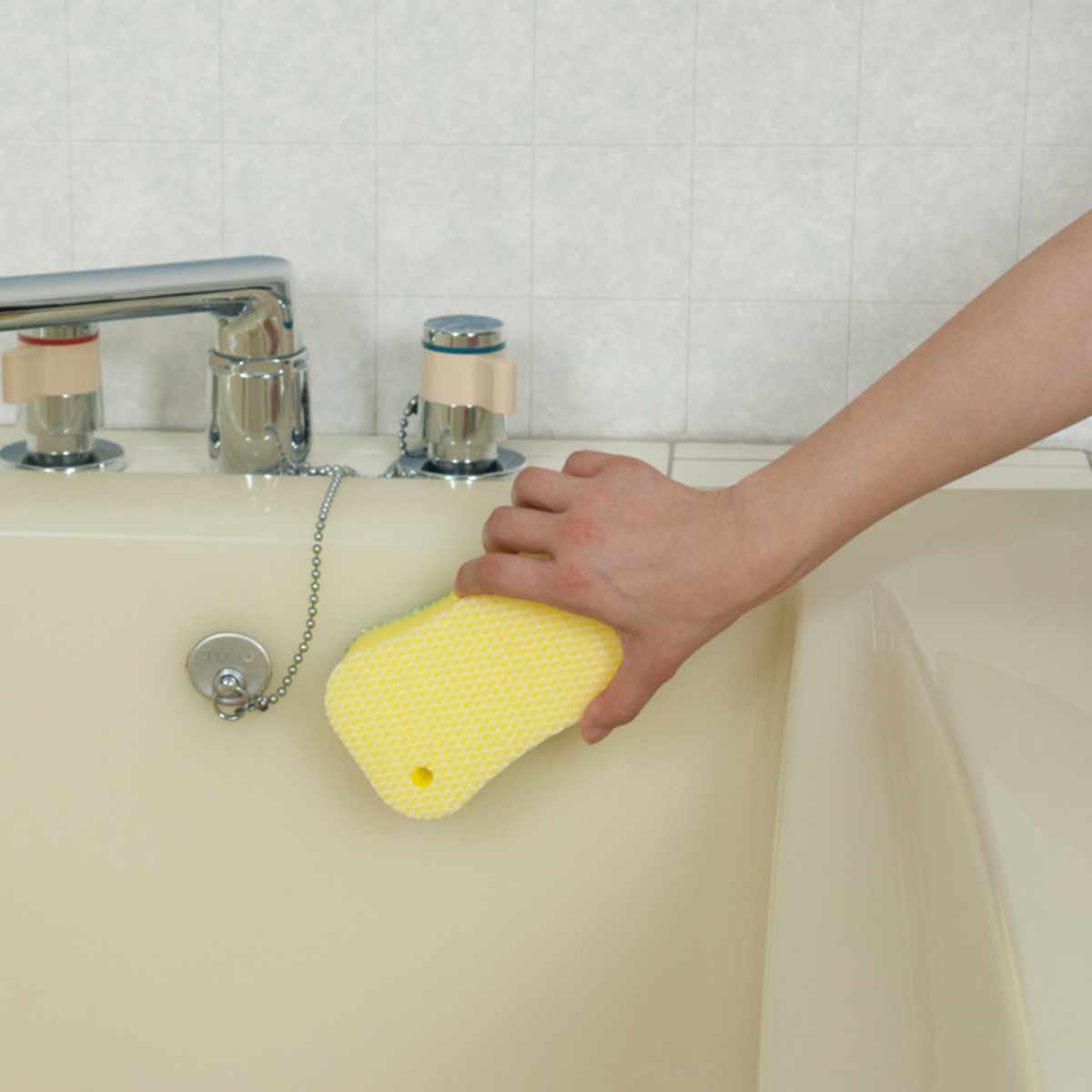 ●水だけで汚れをスッキリ落とせるバススポンジです。