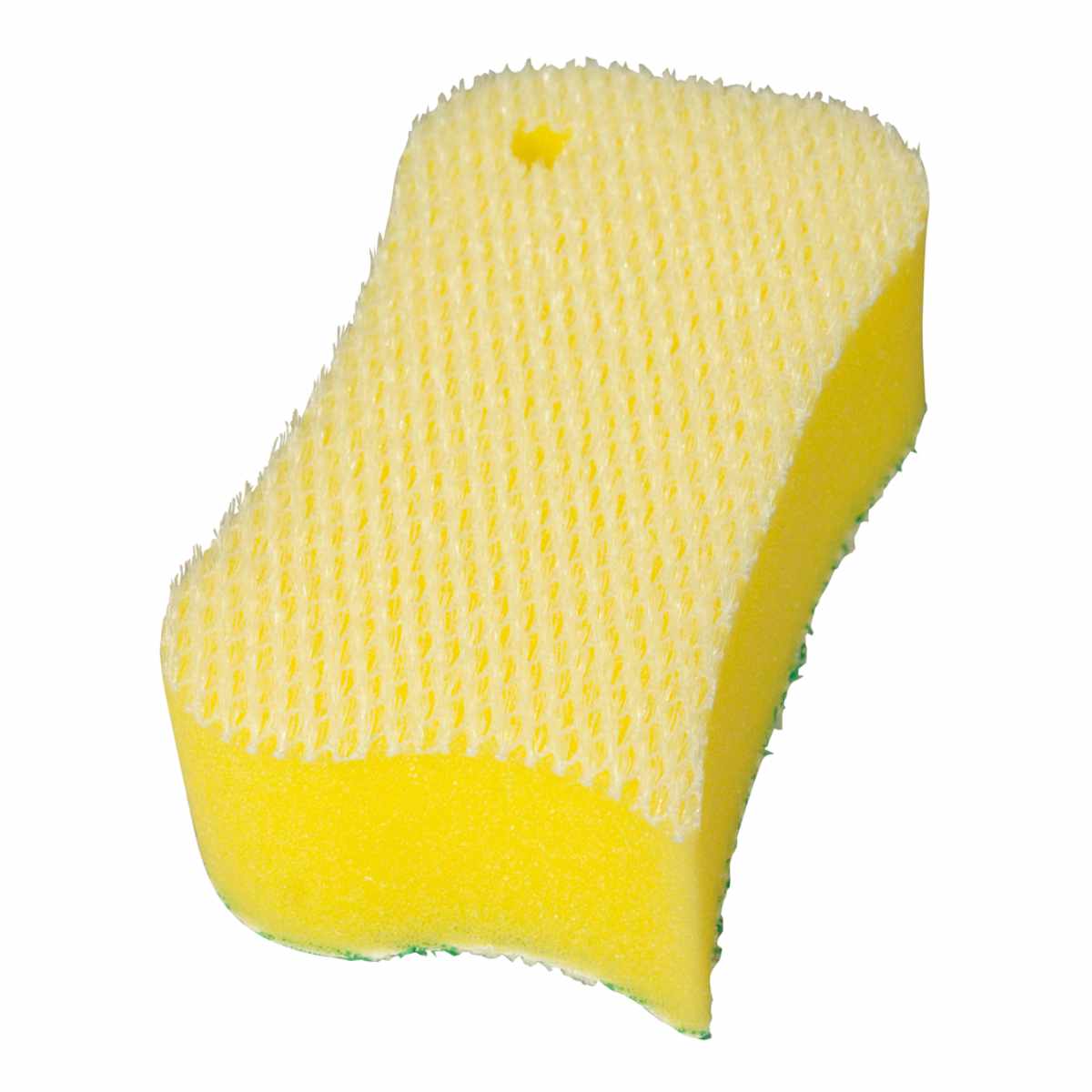 水だけで汚れをスッキリ落とせるバススポンジです。スポンジの表裏に用途の異なる繊維を貼り付けることで、浴室をまるごとお掃除できます。