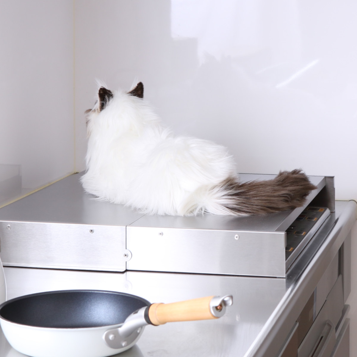 好奇心旺盛でどこにでも飛び乗ってしまう猫。コンロカバーを使用することで、加熱部分への接触を防ぎ、火傷や事故のリスクを減らすことができます。