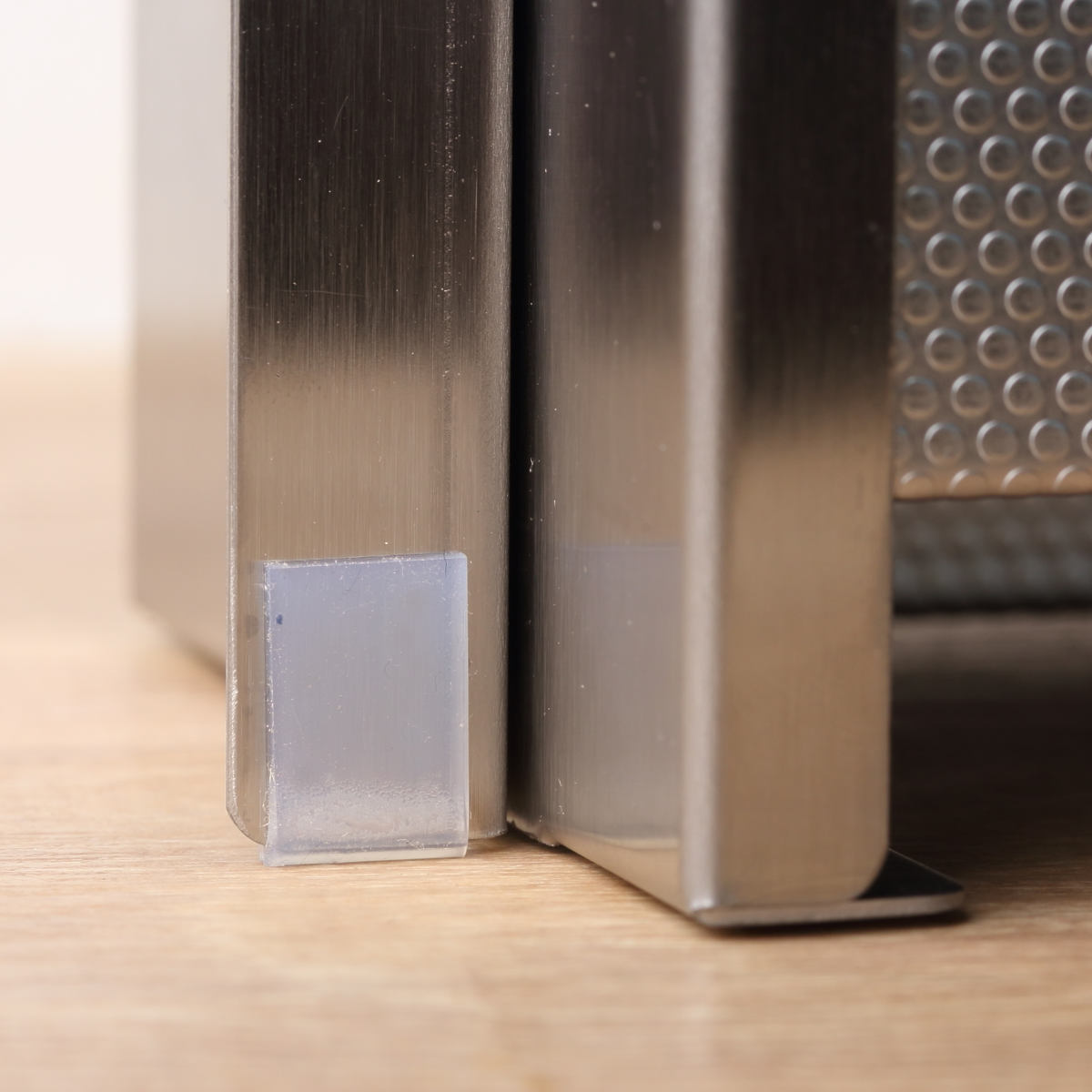 本体にクッションテープが4か所付いています。さらにクッションゴムが8個付属しているため、カバー使用時も、たたんでいる時も、接地面が保護されキッチンが傷つきにくいです。