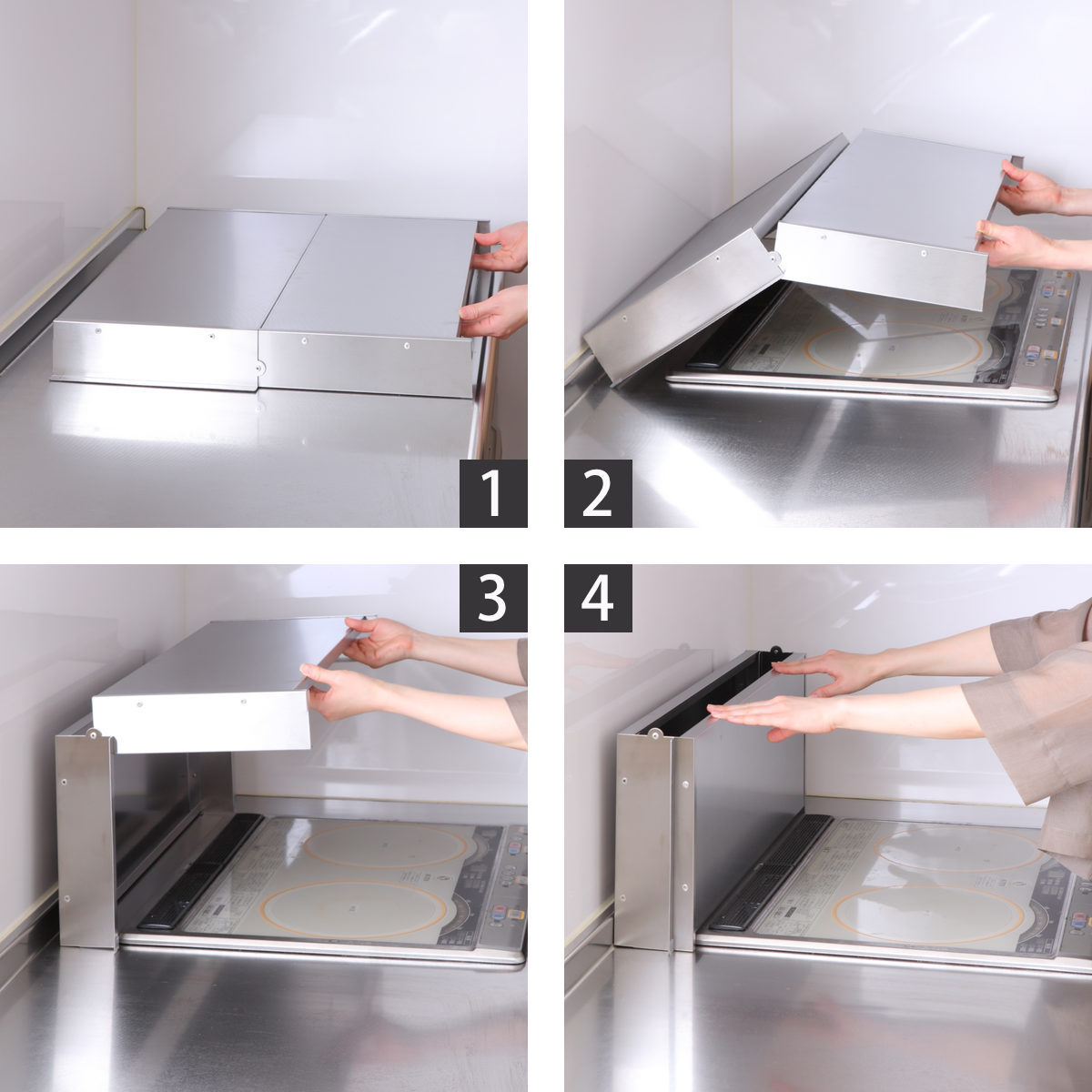 コンロカバー 折りたたみ式 ステンレス スーパーエンボスコンロカバー 75cm用 ( 日本製 レンジカバー ガスコンロカバー ガスレンジカバー 猫 コンロ ネコ 飛び乗り いたずら防止 油ハネガード 目隠し 作業台 ステンレスカバー )