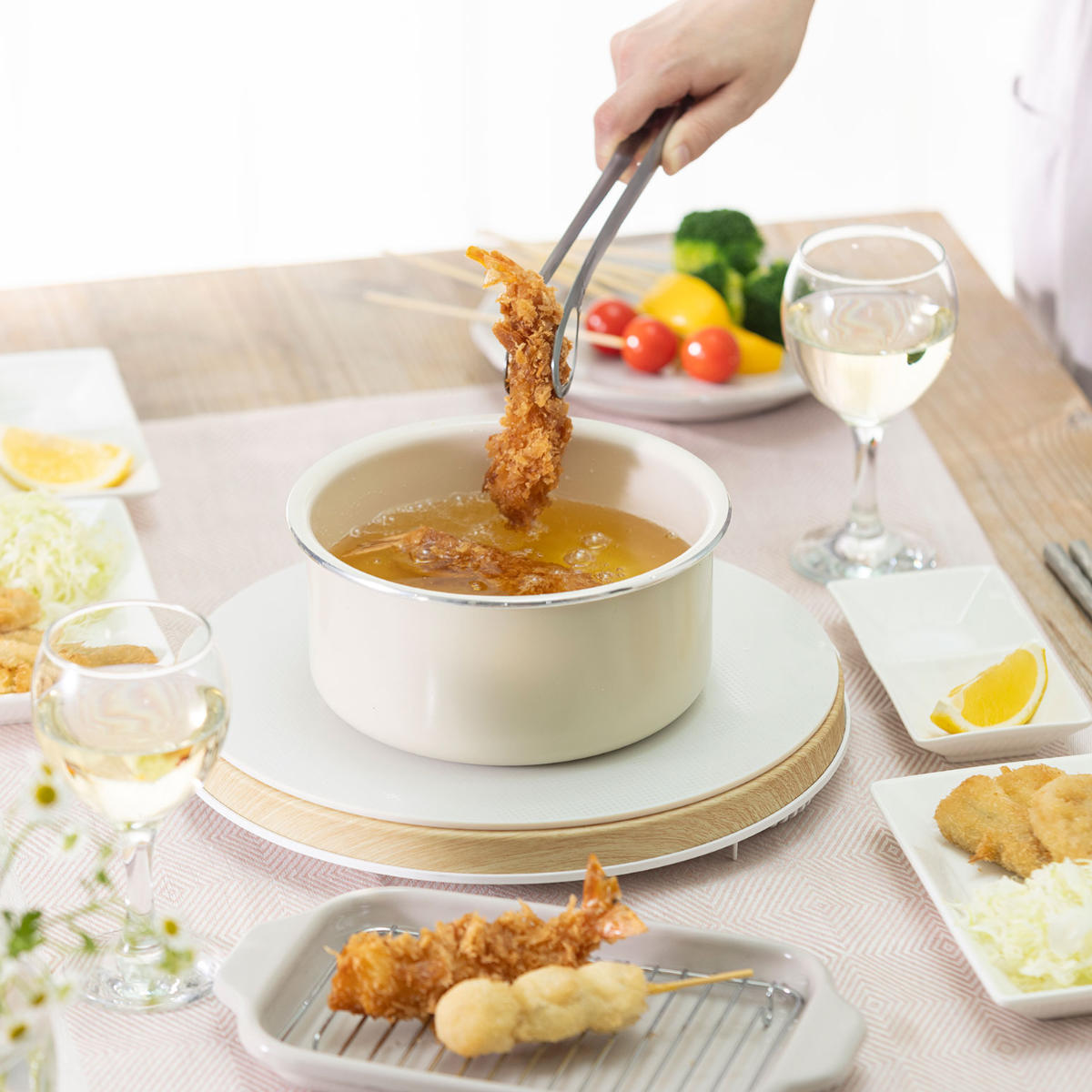 ガス・IHクッキングヒーターなどあらゆる熱源でお使いいただけます。高温で調理しても底が変形しにくいため、熱源を選びません。