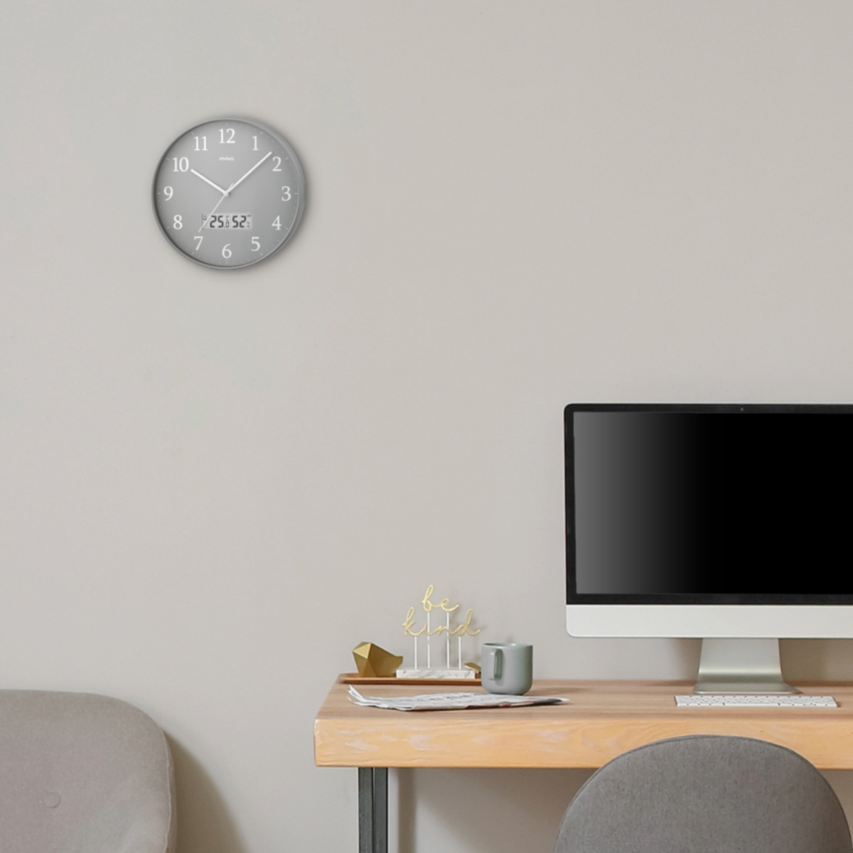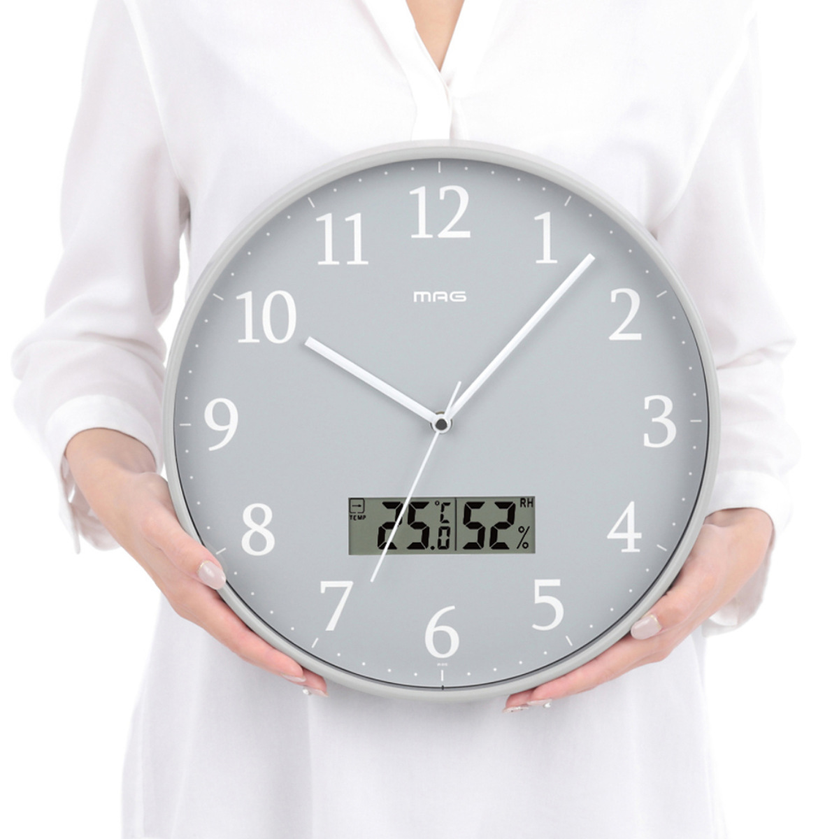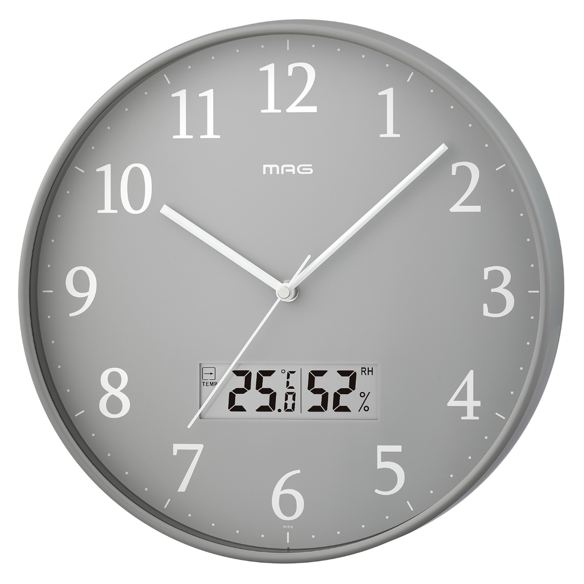 掛け時計 グリージョ MAG 電波時計 ステップ秒針 秒針停止機能付き 温湿度計付き ( マグ ウォールクロック 時刻同期 時計 壁掛け アナログ時計 30cm 温度 湿度 夜間秒針停止 シンプル レトロ おしゃれ 文字盤 グレー )