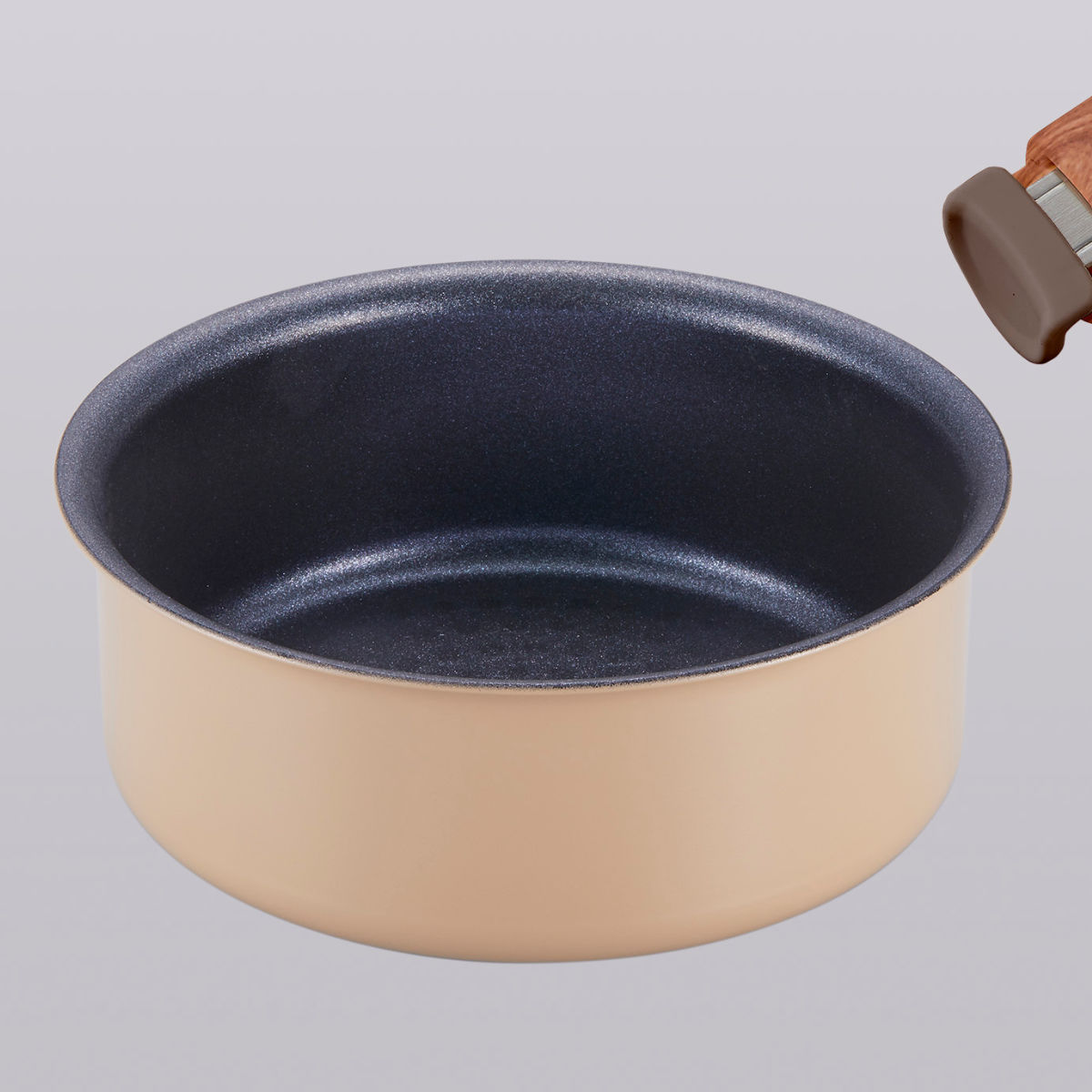 ハンドルを外すことで、フライパンや鍋を重ねてコンパクトに収納できます。シリーズでまとめても場所を取らず、キッチンをすっきり保てます。