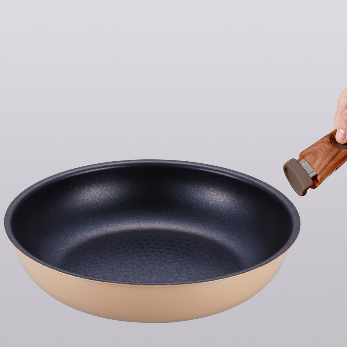 ハンドルを外すことで、フライパンや鍋を重ねてコンパクトに収納できます。シリーズでまとめても場所を取らず、キッチンをすっきり保てます。