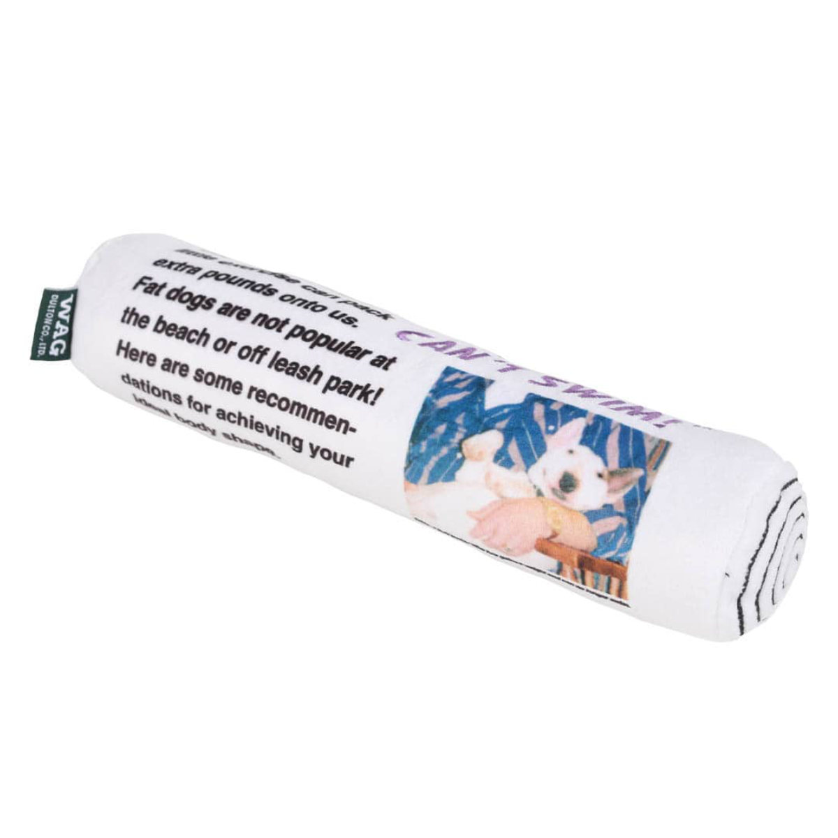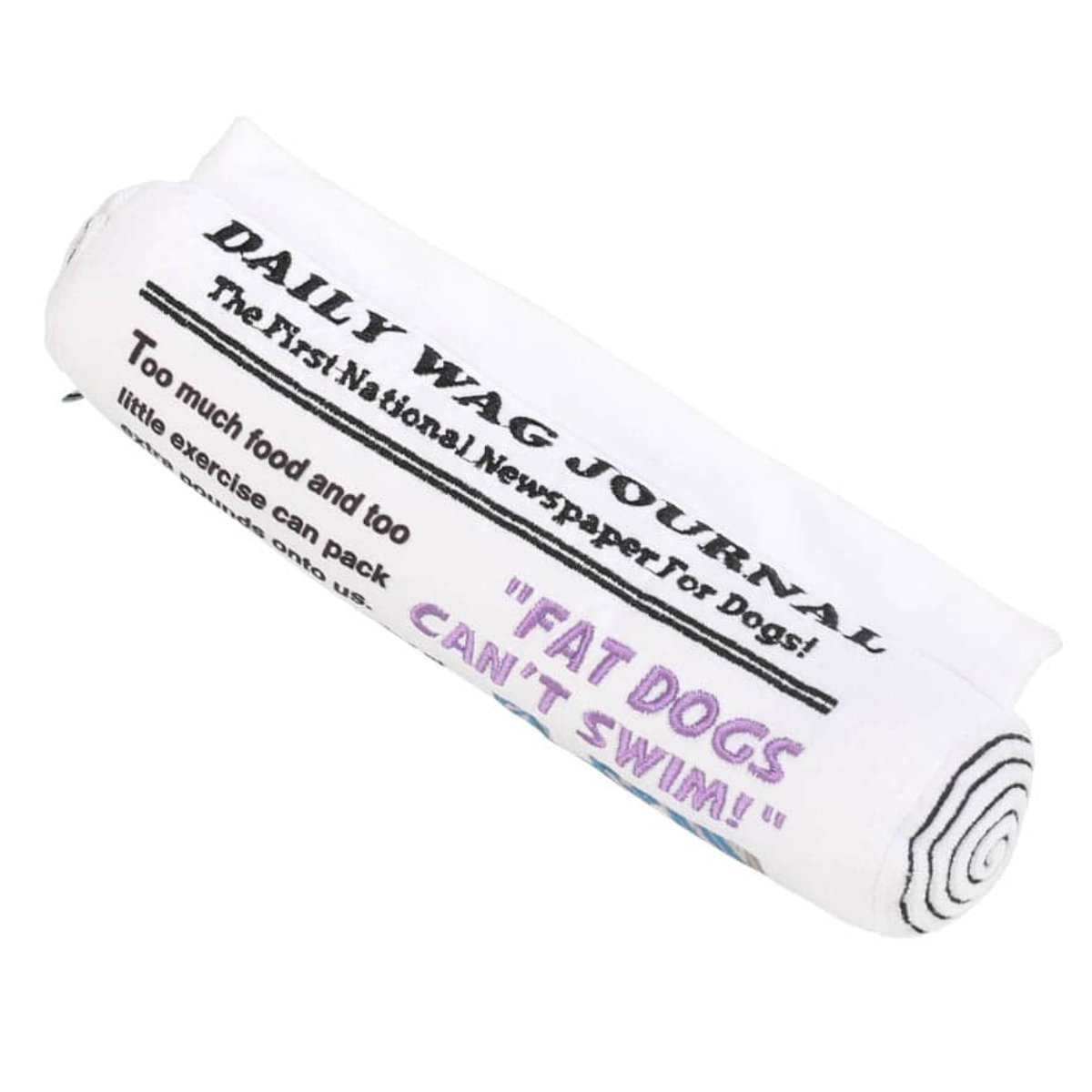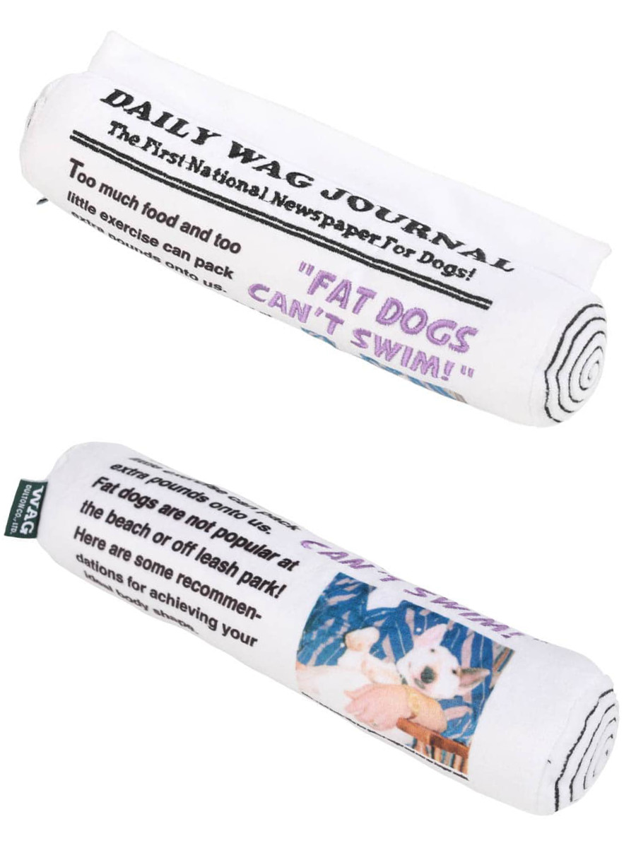 架空の新聞がモチーフになっています。一面には「太った犬は泳げないぞ!」という見出しで運動不足に対して警笛を鳴らす記事が書かれています。