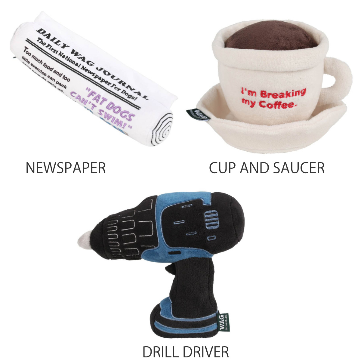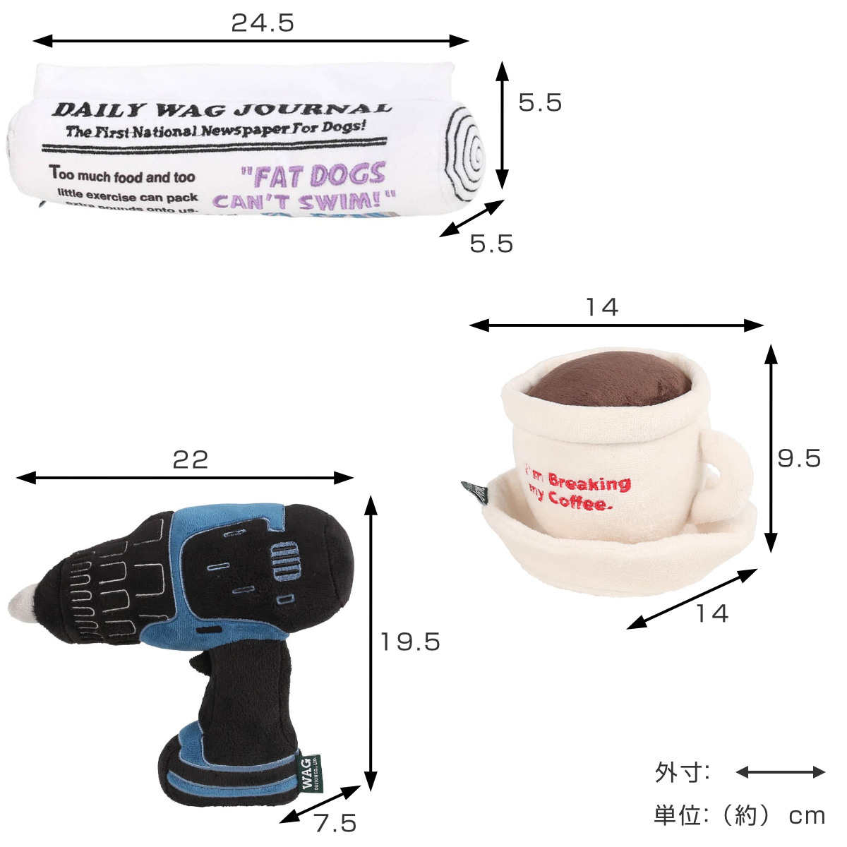 | サイズ | NEWSPAPER:約 幅24.5×奥行5.5×高さ5.5(cm) CUP AND SAUCER:約 幅14×奥行14×高さ9.5(cm) DRILL DRIVER:約 幅22×奥行7.5×高さ19.5(cm) |