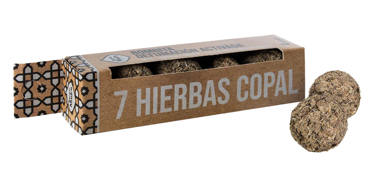 7つのエッセンス(コパル、コントライハーブ、ホワイトセージ、ラベンダー、ユーカリ、ローズマリー、ルダ)/ハーブ/樹脂/杉/廃棄フルーツ/木炭/天然結合剤/塩