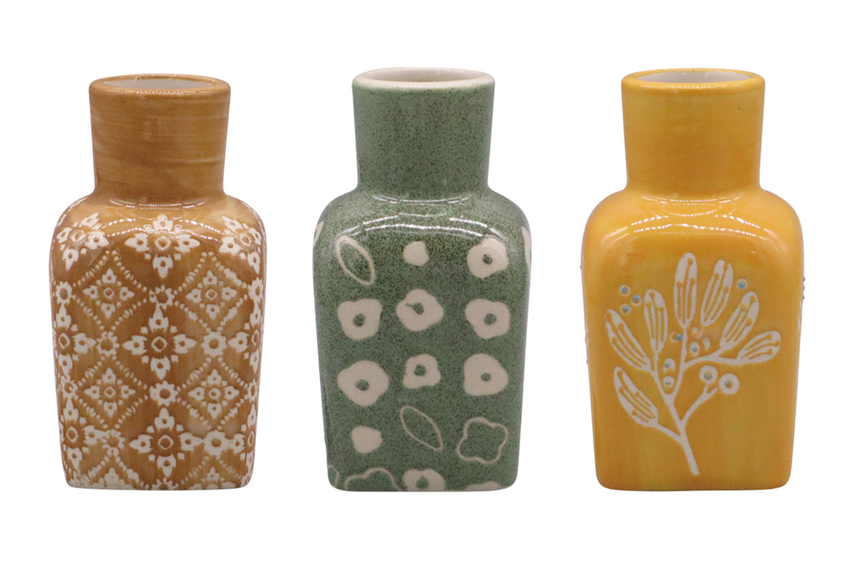 東欧風の絵柄がかわいい小さなセラミックベースです。オブジェとしてお部屋にさりげなく飾っておくだけでも雰囲気のある空間を演出してくれます。
