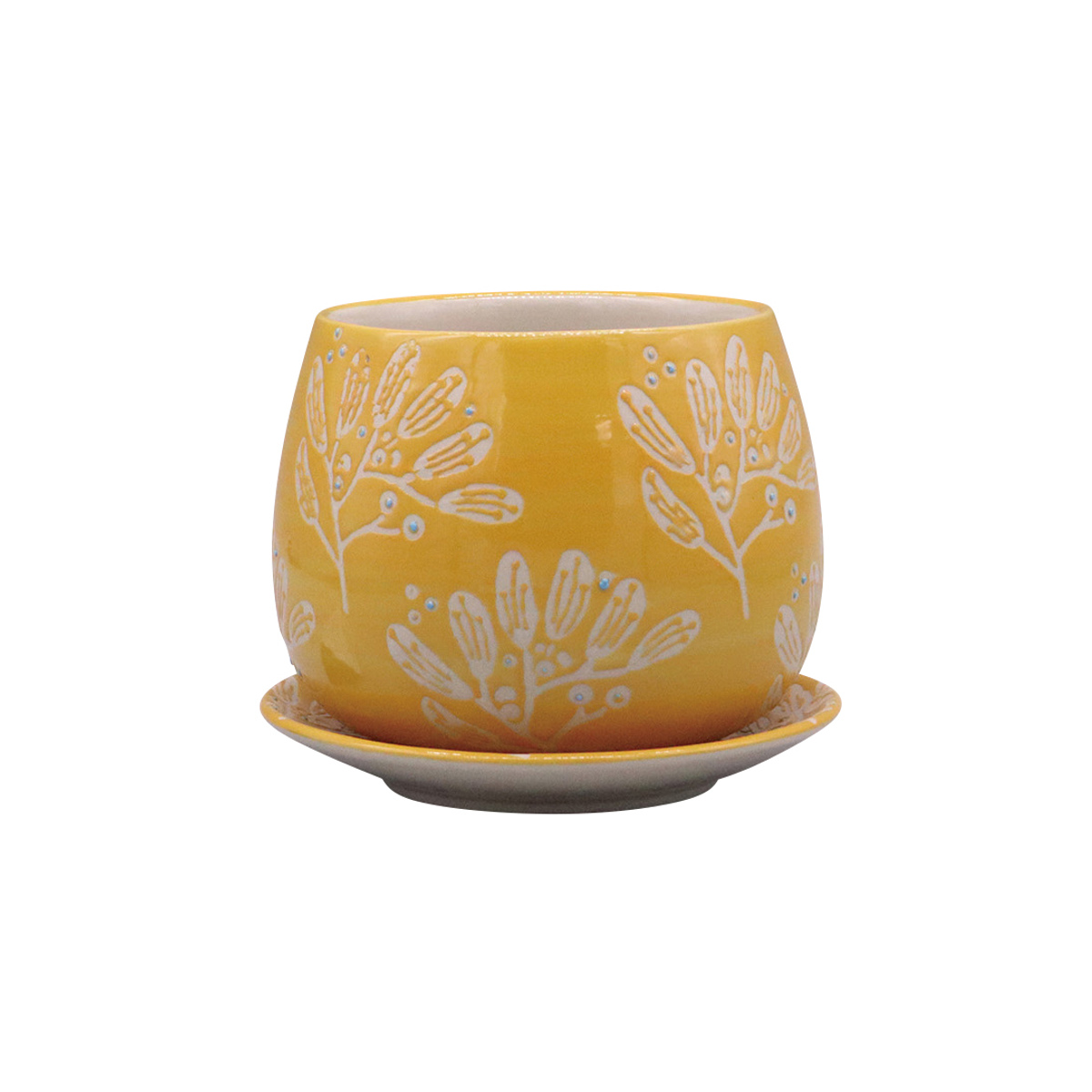 東欧風の絵柄がかわいいセラミックポットです。内径約8cmなので、テーブルサイズの観葉植物などを植えるのにぴったりなサイズ感です。ソーサー付きなので、水がこぼれる心配もなくそのまま置くことができます。