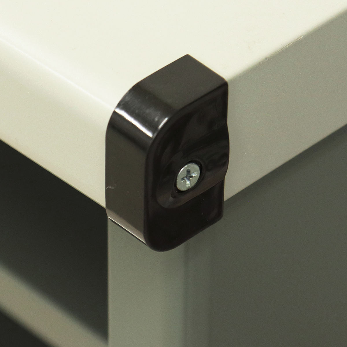 天板の前面2か所にはコーナーキャップが付いています。角が丸くなっているので万が一ぶつけてしまっても安心です。