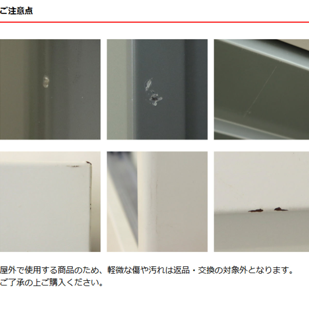 屋外で使用する商品のため、軽微な傷や汚れは返品・交換の対象外となります。
