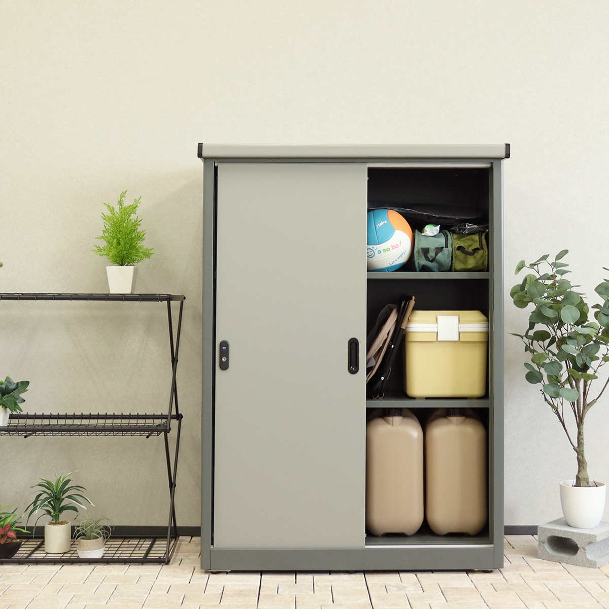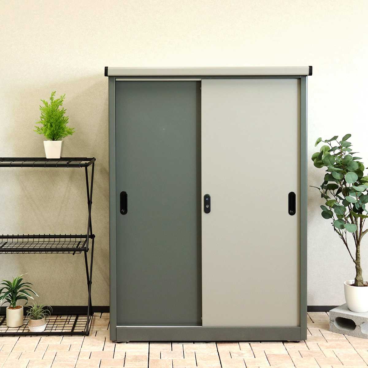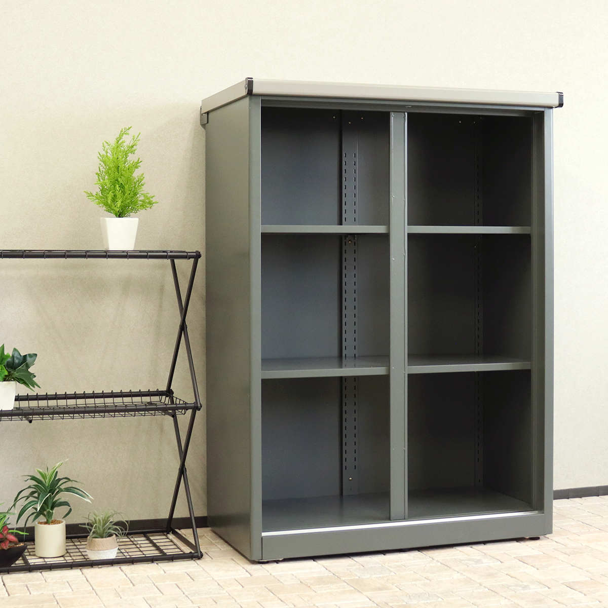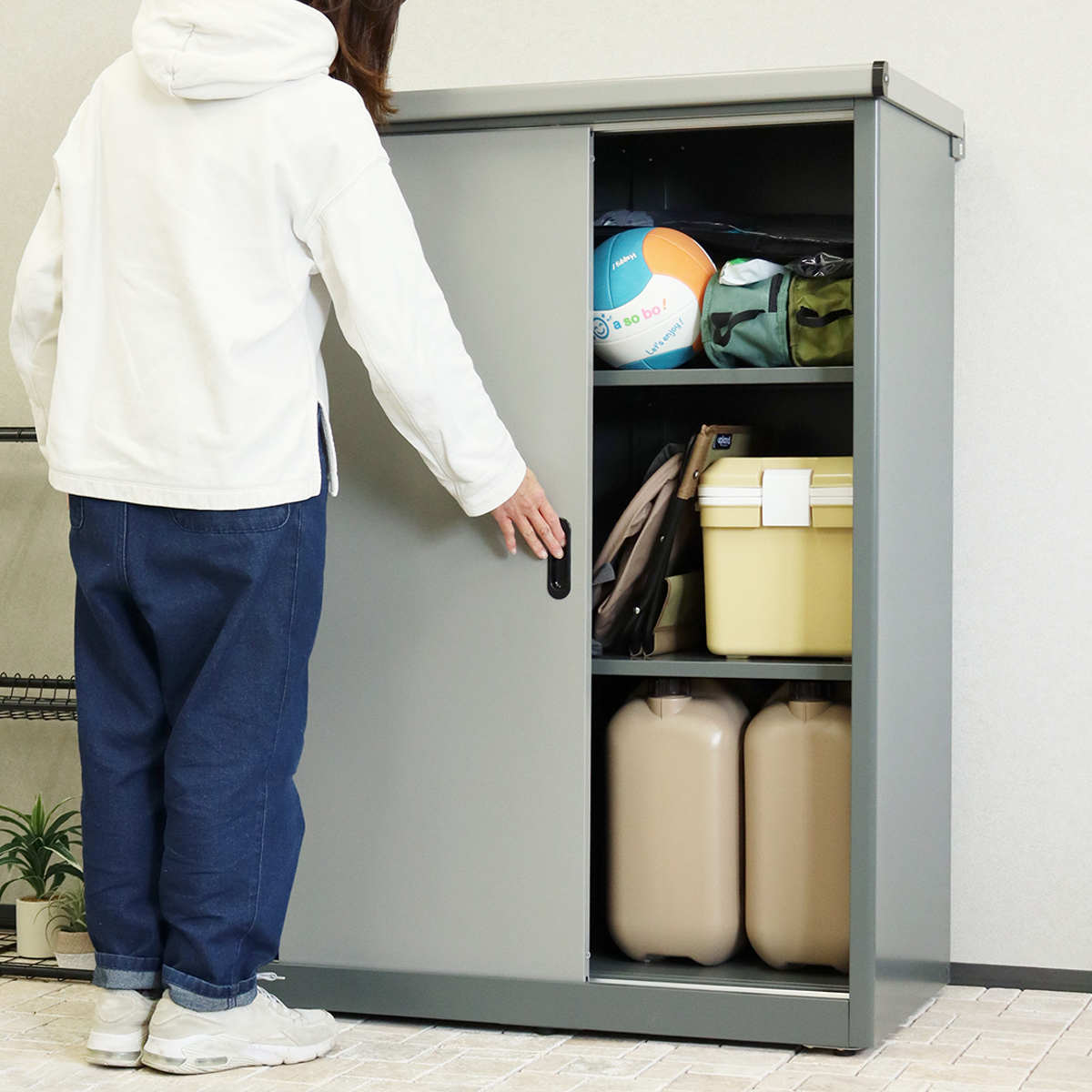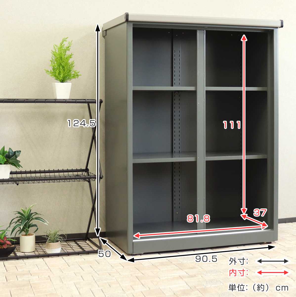 物置 Ave アーヴェ ラージ 幅90.5×奥行50×高さ124.5cm ( 屋外物置 幅90.5cm ベランダ 物置き 屋外収納 収納 ラック 大型 収納庫 倉庫 ガーデン ガレージ 庭用品 ストッカー ガーデンストッカー 鍵付き 可動棚 3段 屋外 ) 【グレー】