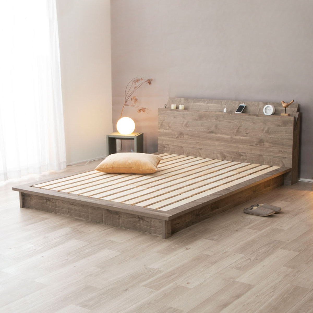 ローベッド キングサイズ Apel SEN すのこ 廃材再利用 ツートン ( コンセント付き ベッドフレーム ロータイプ フロアベッド 大型 大きいサイズ お掃除ロボット対応 千 おしゃれ モダン ブラウン グレー ホテルライク ) 【グレー】