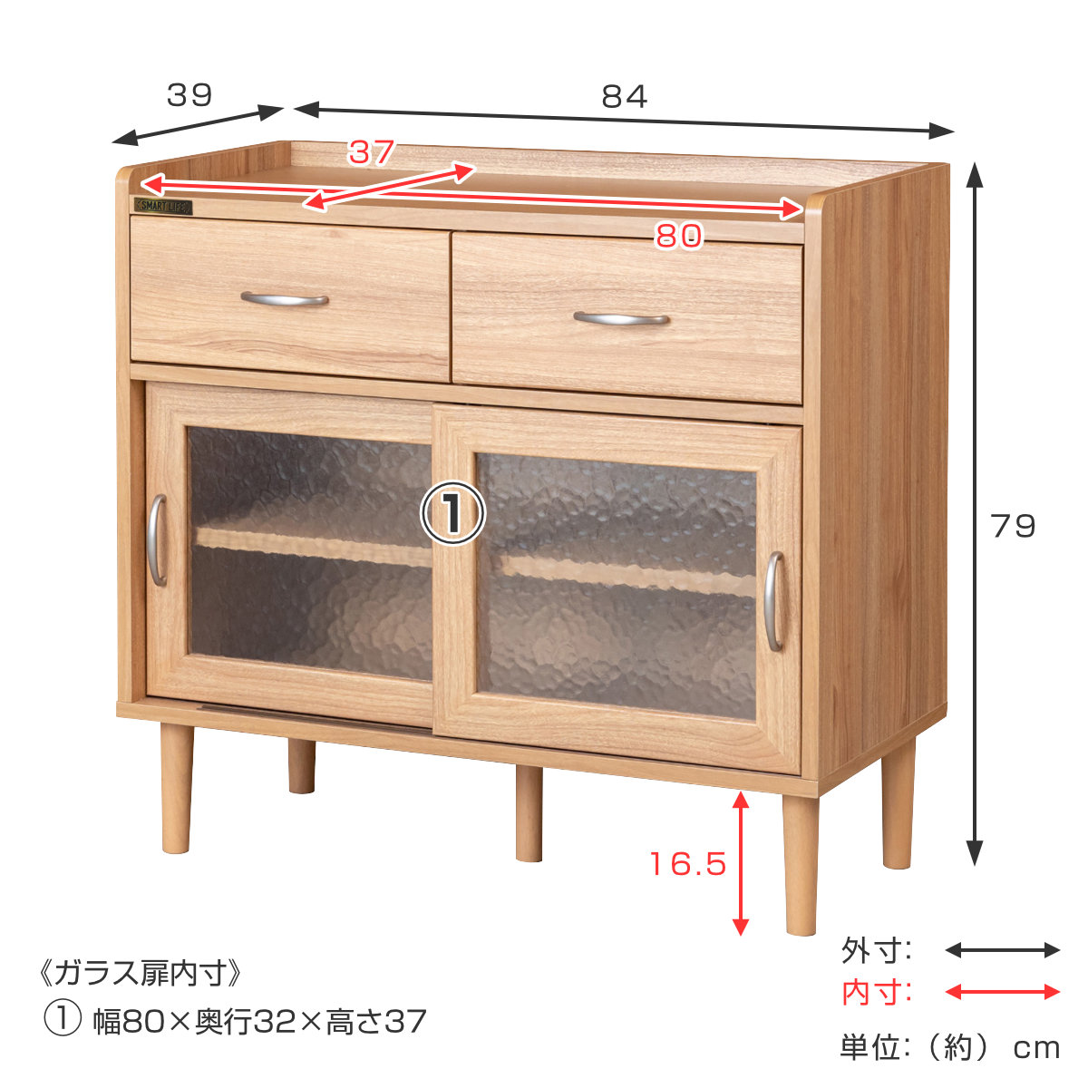 | サイズ | 約 幅84×奥行39×高さ79(cm) |