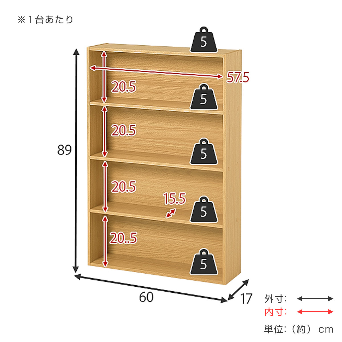 コミックラック 2台セット 幅60cm 312冊収納 DVD収納可能 奥行17cm ( 本棚 ラック 大容量 奥行スリム 収納 コミック B6 2個 2台 オープンラック 棚 ブラウン ナチュラル ホワイト シンプル 家具 ) 【ナチュラル】