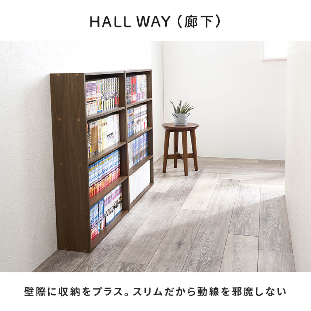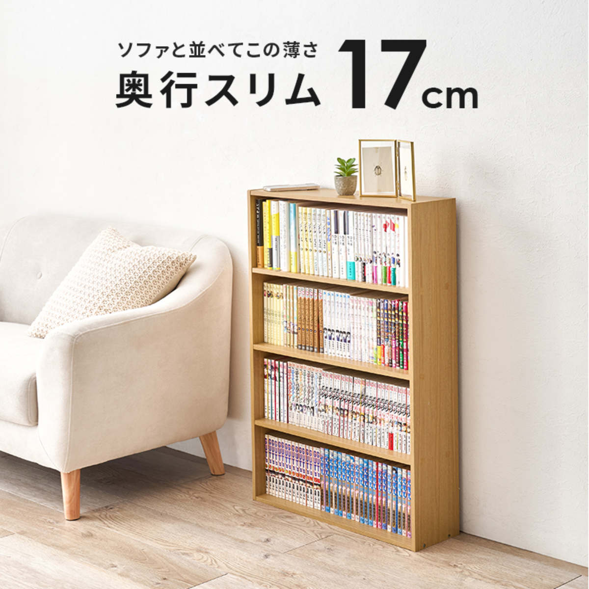 奥行わずか17cmのスリムな設計のコミックラックです。1列収納なので、全ての本の背表紙がよく見えて、読みたい本を簡単に手に取れます。1人暮らしのお部屋にはもちろん、リビング収納や子ども部屋の収納としても活躍します。
