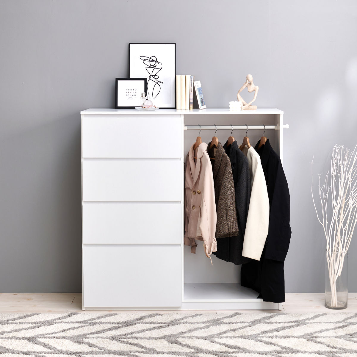 ハンガーラック 幅121cm 引出し4杯 省スペース ( 衣類収納 棚 ラック ハンガー 引き出し 収納 4段 四段 ポールハンガー チェスト コート掛け ダークブラウン ナチュラル ホワイト 家具 ) 【ナチュラル】