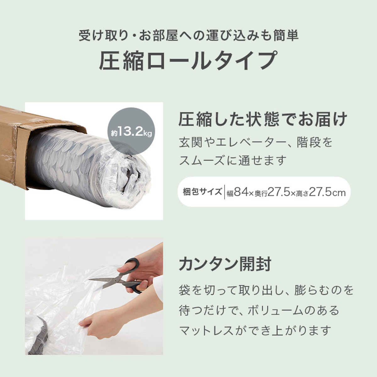 圧縮ロール梱包タイプで搬入設置が楽々