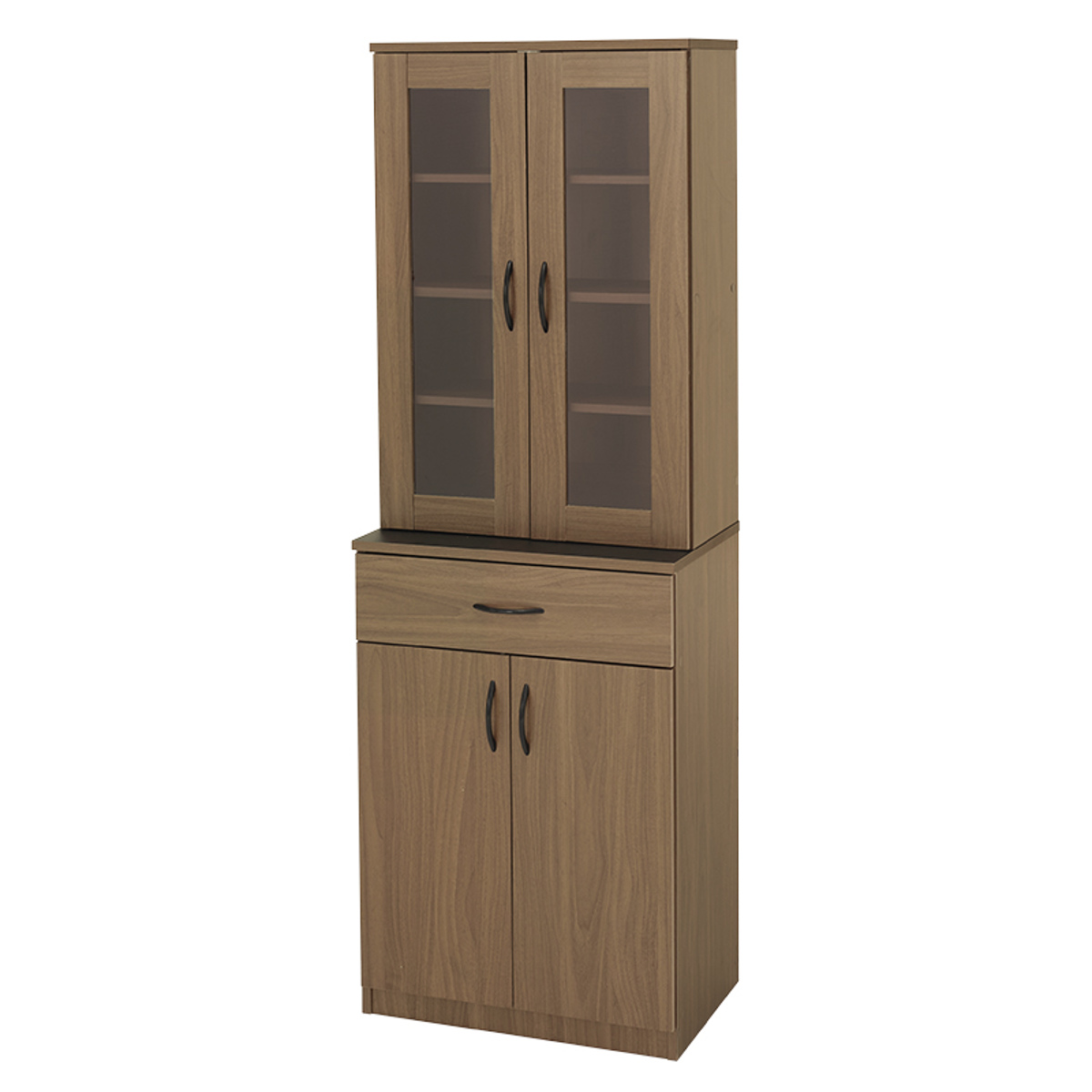 限られたスペースにも置きやすい、スリムタイプの食器棚です。幅59cmのスリムサイズですが、高さを活かした収納力で食器やキッチン用品をまとめて収納できます。