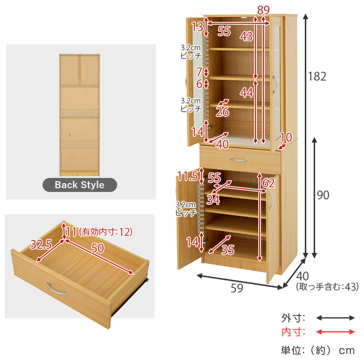 | サイズ | 約 幅59×奥行43×高さ182(cm) |