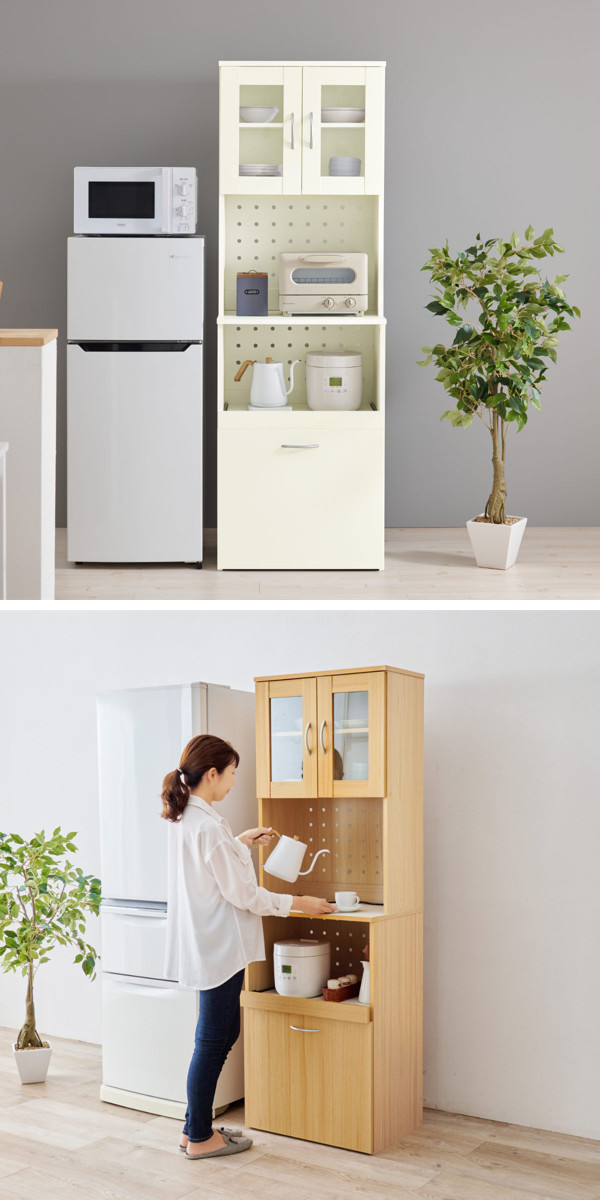 ![]() 隙間にも置ける スリムな食器棚 幅59cm | ![]() 家電と食器を1か所に キッチンボード 幅59cm | ![]() 大容量タイプ キッチンボード 幅89cm |
