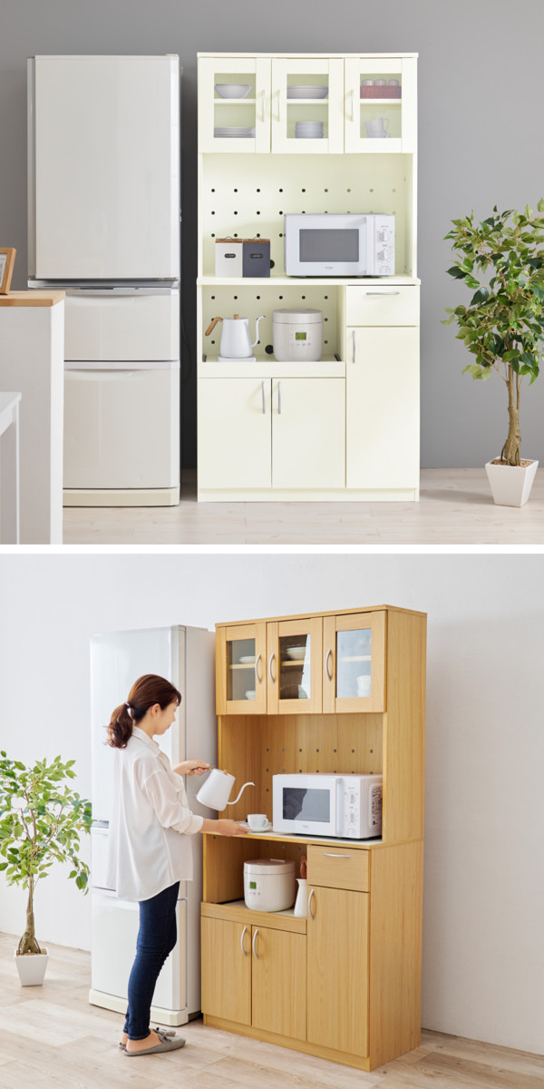 ![]() 隙間にも置ける スリムな食器棚 幅59cm | ![]() 家電と食器を1か所に キッチンボード 幅59cm | ![]() 大容量タイプ キッチンボード 幅89cm 【▲このページの商品】 |
