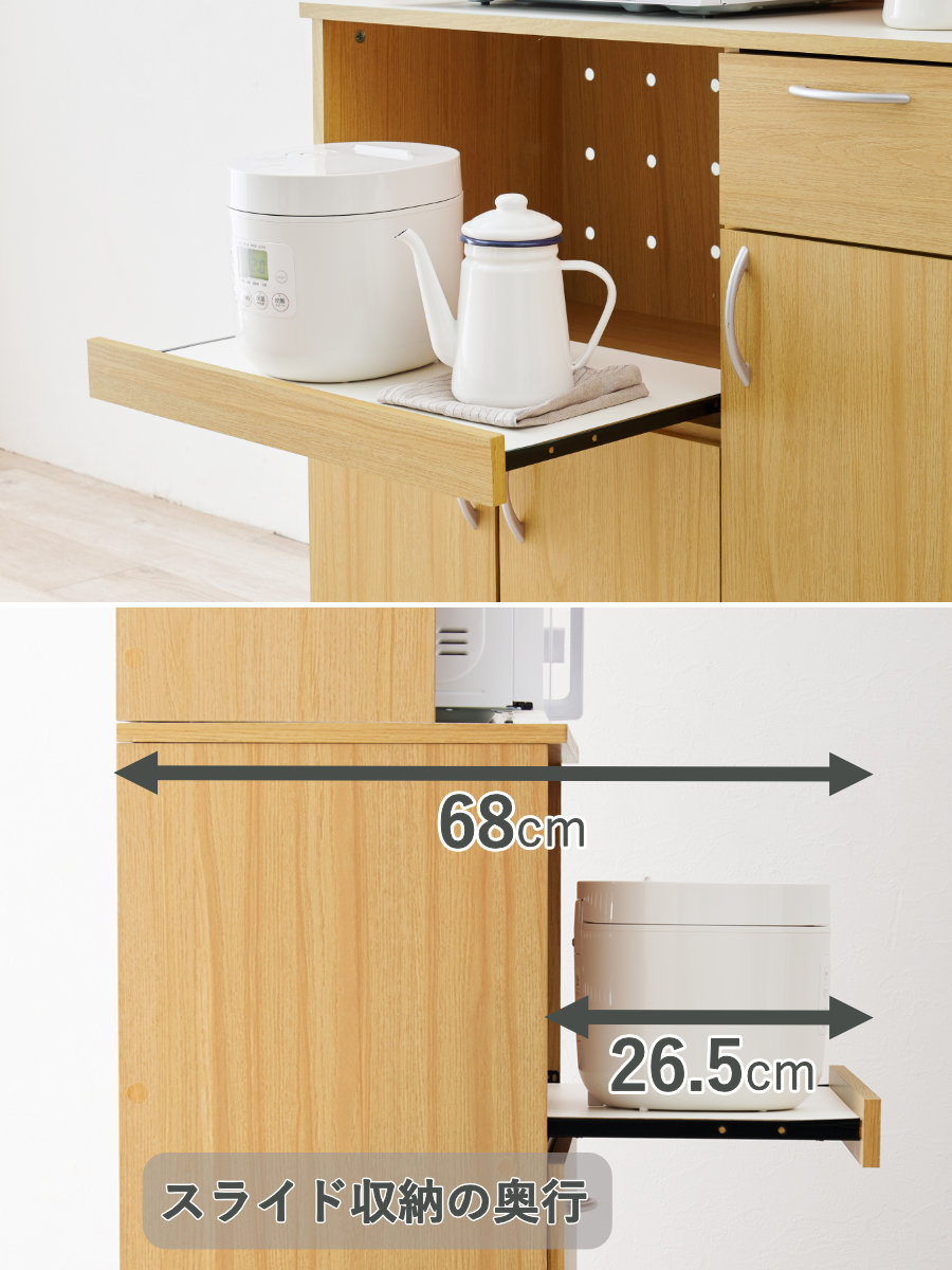 | 耐荷重 | オープンスペース:10kg スライド棚:5kg |