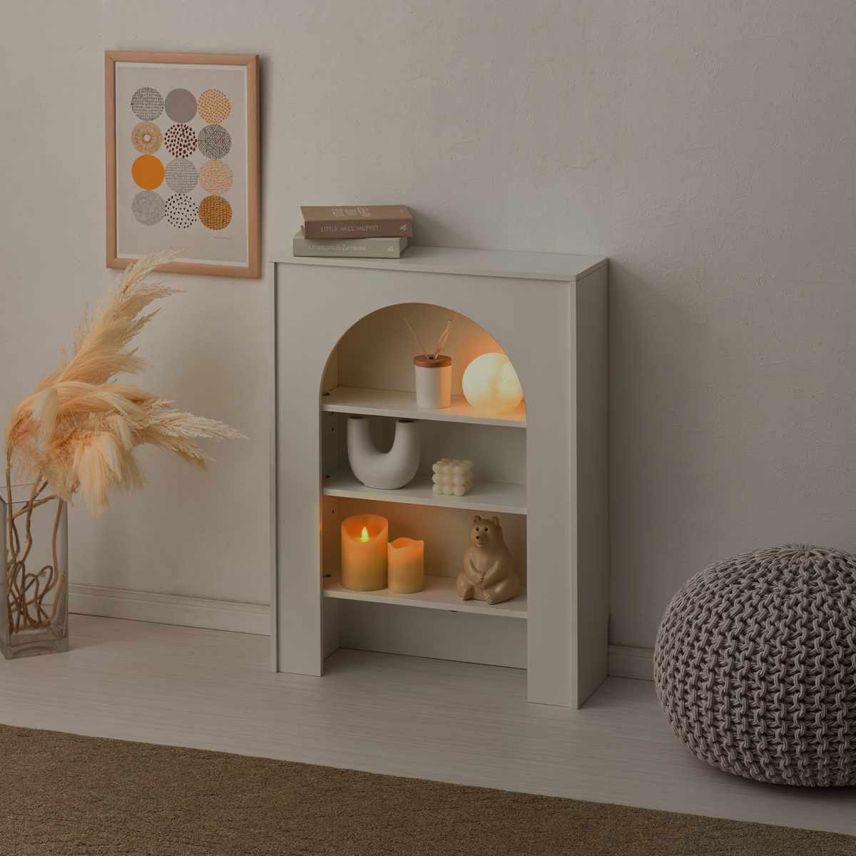 マントルピース 幅60cm 完成品 可動棚 ( オープンラック 棚 ラック 収納 ディスプレイラック シェルフ 飾り棚 韓国風 ホワイト アーチ型 )