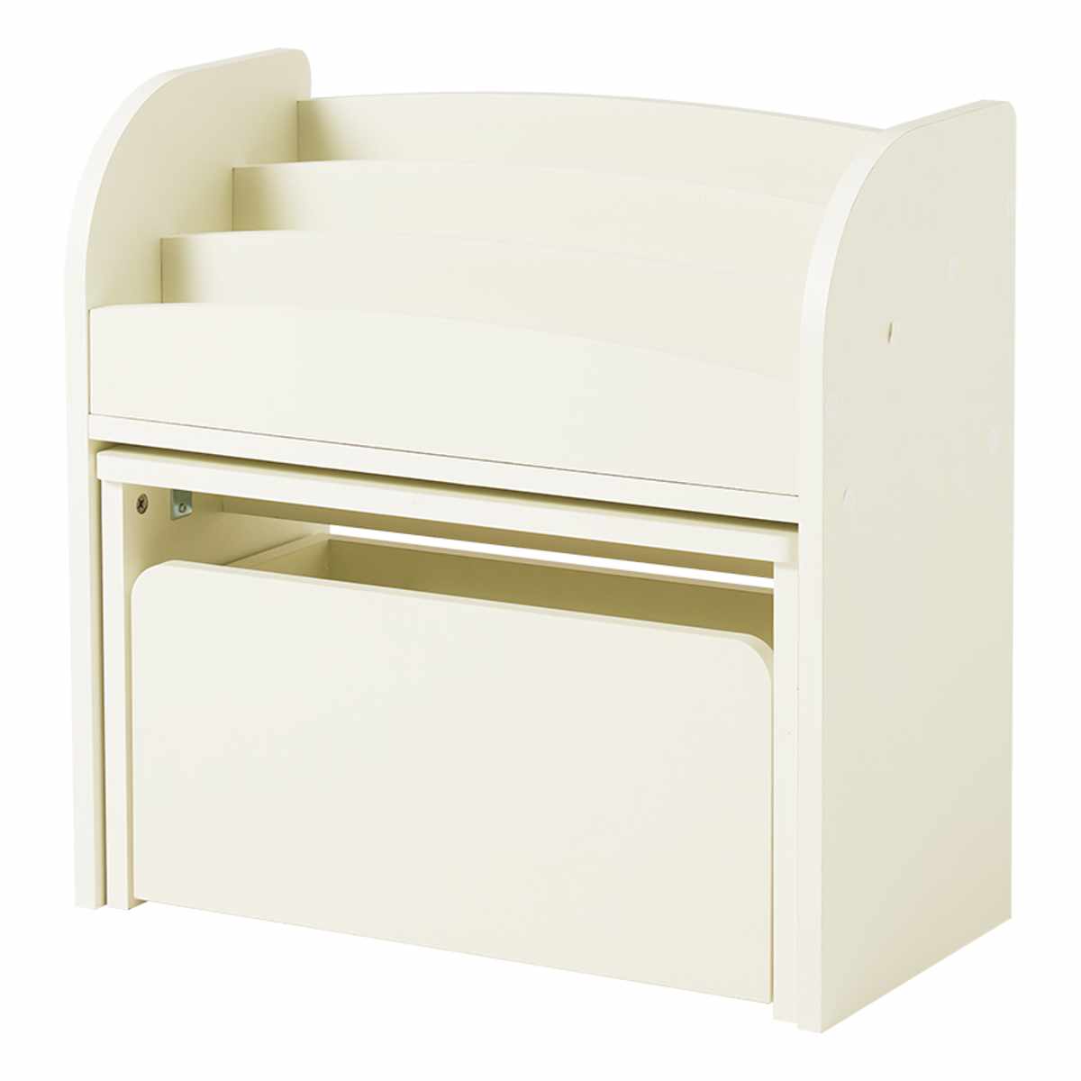 ミニデスクとワゴンがセットになった絵本ラックです。デスクとワゴンはラック下にぴったり収まるので、コンパクトに収納できます。隙間に余裕があるので、指を挟んでしまう心配もありません。