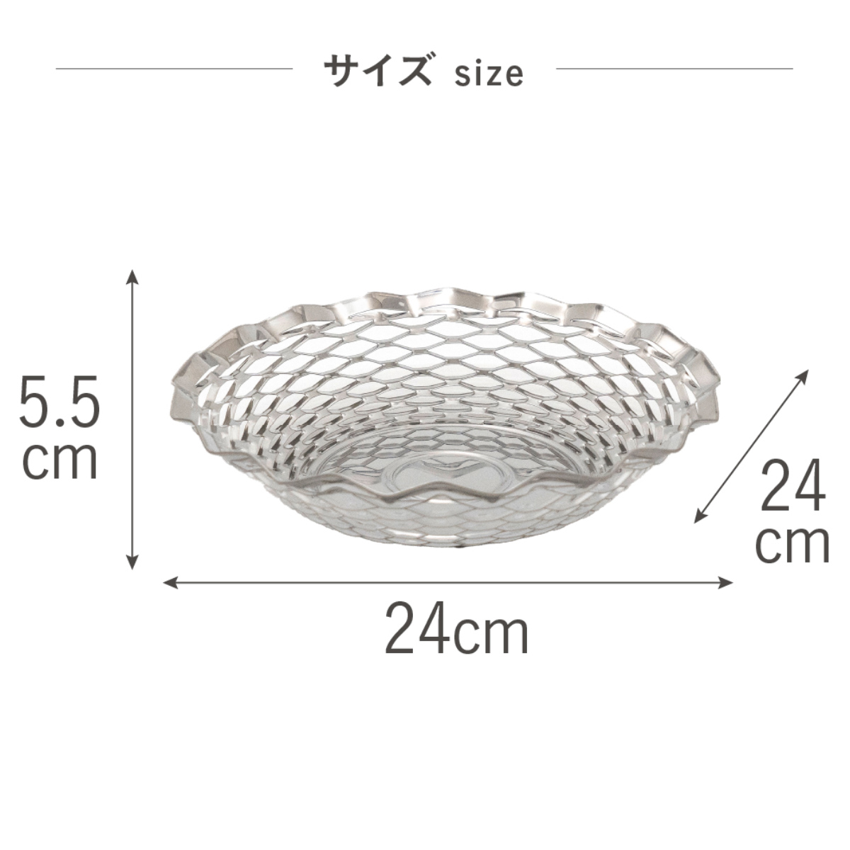 関連キーワード:幅24×奥行24×高さ5.5cm 直径24cm 便利 丈夫 定番 玄関 洗面所 フランス製 ステンレス製 ステンレス製トレー ディスプレイ 盛り付け おやつ くだもの 果物かご 籠 カゴ ブレッドバスケット パン ぱん カギ 鍵 時計 腕時計 アクセサリー サニタリー スキンケア用品 カフェ ホテル ニュアンス シンプル 網目 オシャレ お洒落 かっこいい カッコイイ クラシック ベーシック シルバーカラー 銀 色 丸洗い 衛生的 軽量 軽い 見せる収納 ロジェ オルフェヴル コンパクト 円形 丸型 形