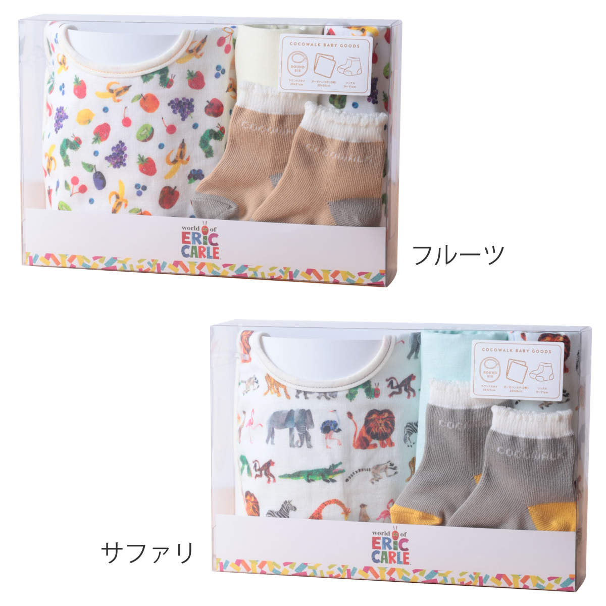 ギフトBOX はらぺこあおむし スタイ ハンカチ ソックス フルーツ サファリ ( ギフトセット 出産祝い ベビー 新生児 プレゼント かわいい 赤ちゃん ギフト セット よだれかけ ミニタオル くつ下 綿 コットン 綿100% ) 【サファリ】