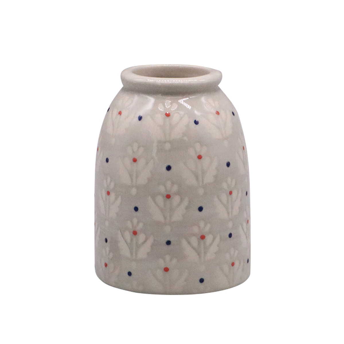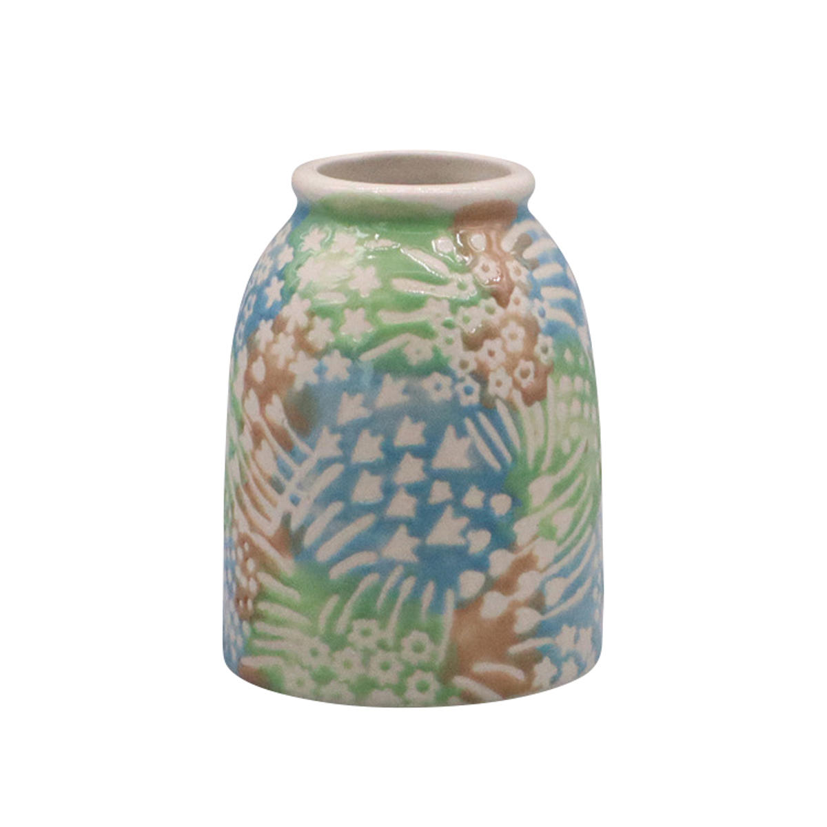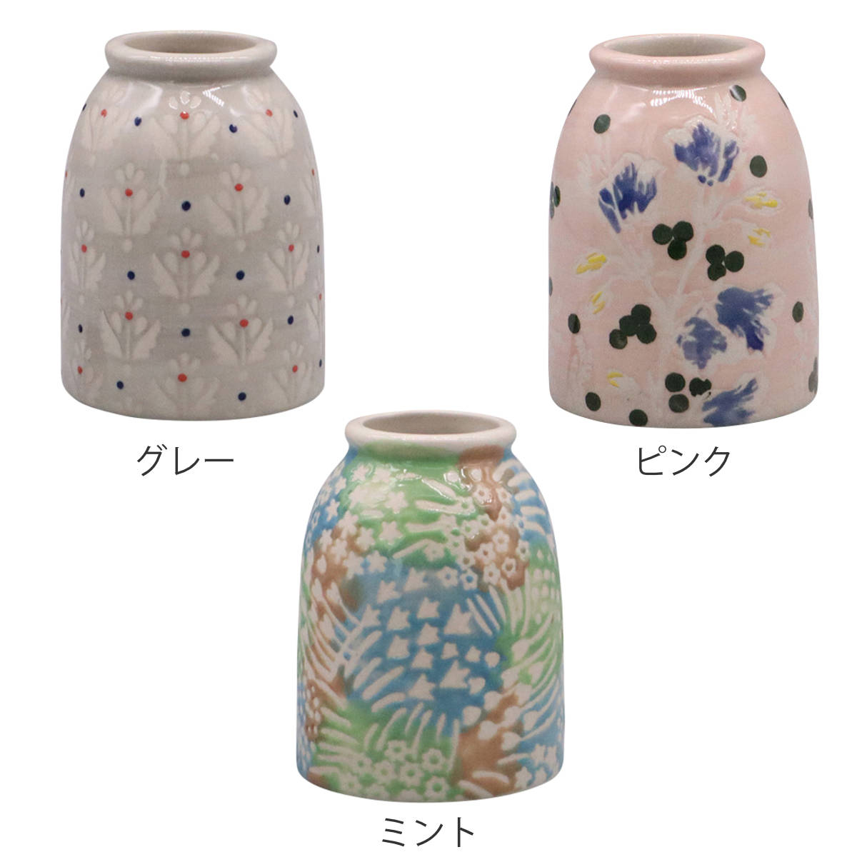 東欧風の柄が可愛いフラワーベースです。表面に凹凸のあるデザインがほっこりとした雰囲気を演出します。生花を活けるのはもちろん、オブジェのように置いているだけでも様になるアイテムです。