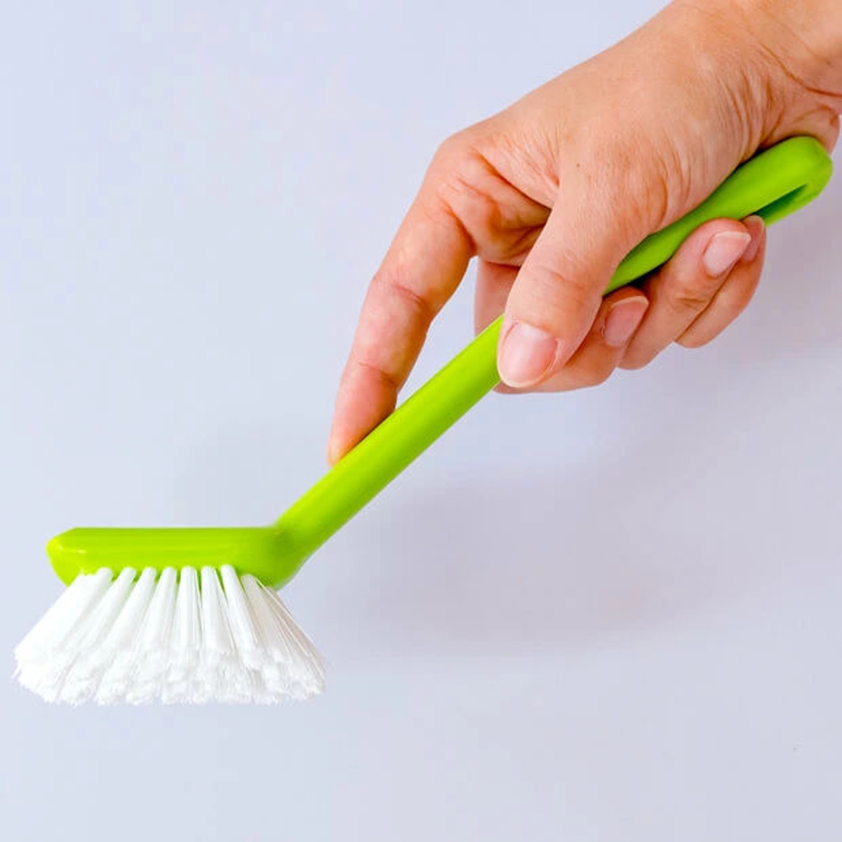 へばりつくシンクのヌルヌル汚れを落とす掃除用ブラシです。広いブラシ面と力の入れやすい角度で設計されたグリップで、シンクの面も角のカーブもゴシゴシ洗うことができます。