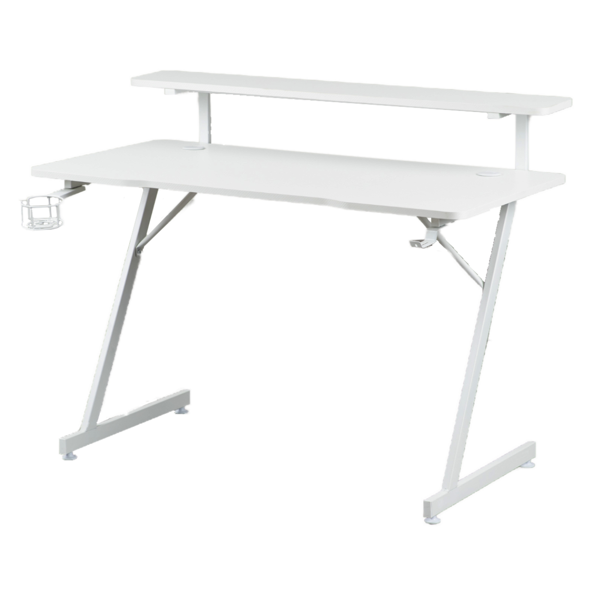 ゲーミングデスク 幅120cm フェレス ( デスク 机 パソコンデスク PCデスク ゲーム モニターラック 棚付き 学習机 勉強机 作業机 オフィスデスク ヘッドホンフック ドリンクホルダー ディスプレイ ラック 配線穴 ) 【ホワイト】
