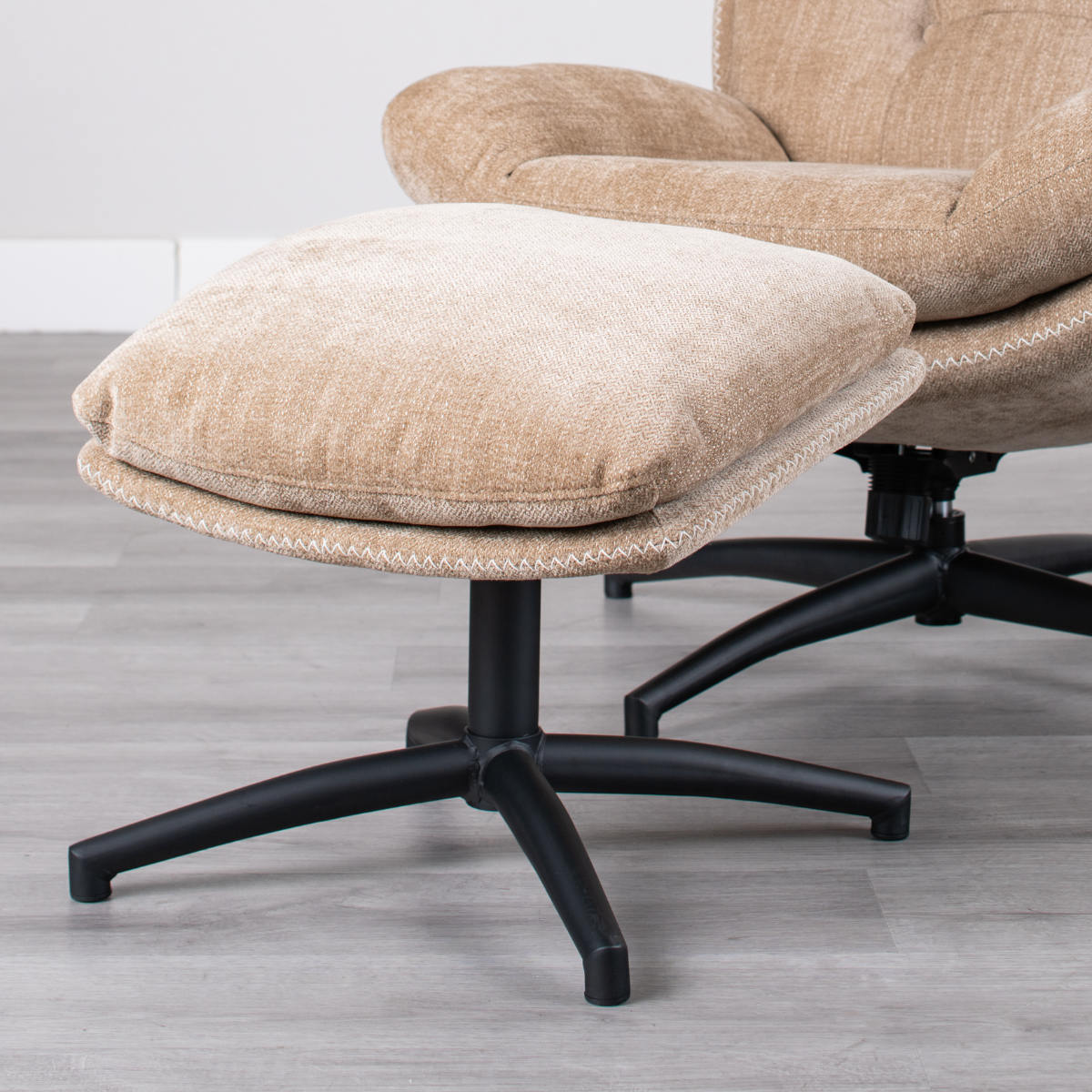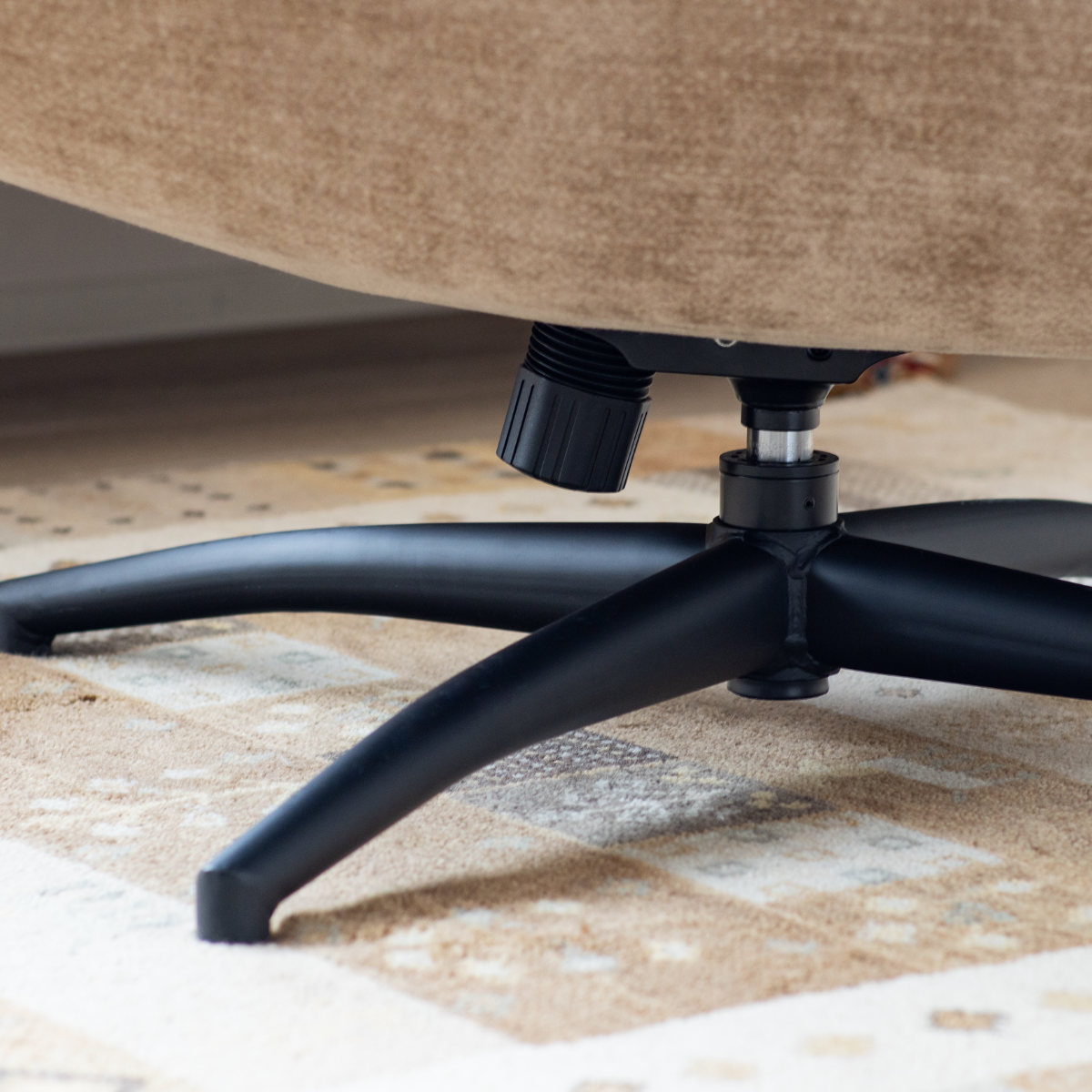 脚を預けられるお揃いのオットマンが付いています。疲れた脚を伸ばしてゆったりとくつろぐことができます。