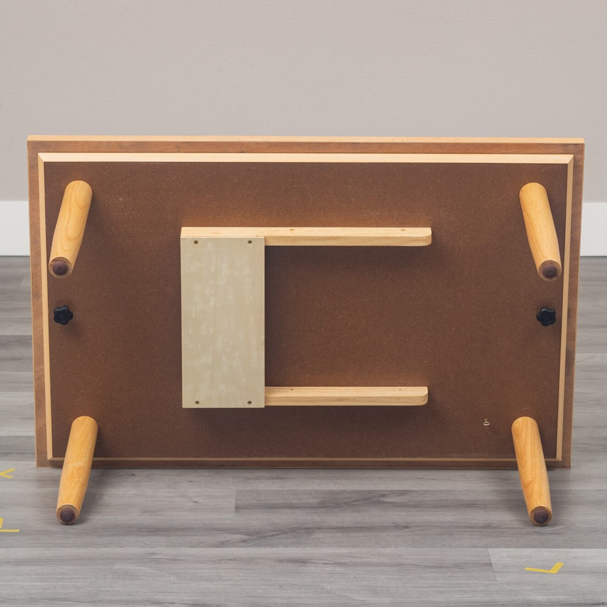幅100cmの長方形天板、1~2人用です。オフシーズンにリビングテーブルでも使えるようなサイズ、デザインになっています。